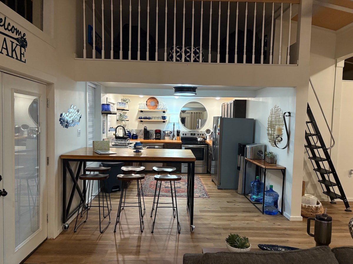 Vuelve a conectar con la naturaleza en esta escapada inolvidable. The Loft House está enclavada en el bosque nacional de Mark Twain y te dará hermosas vistas y aberturas hacia el lago Table Rock. Esta minicasa de nueva construcción proporcionará todas las necesidades necesarias para una estancia inolvidable. Mientras disfrutas de las bellezas y la frescura de la naturaleza, la casa todavía ofrece todos los lujos para una estancia cómoda.