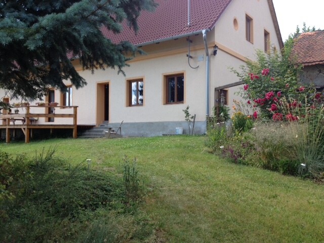 Casa de campo original de dos plantas lujosamente renovada del siglo XVIII se encuentra cerca de la frontera con Alemania bajo el castillo Přimda del siglo XI en la naturaleza virgen del bosque bohemio entretejido con senderos para bicicletas, estanques, bosques llenos de setas y frutas del bosque. Varios destinos turísticos cercanos: el castillo de Bor, Tachov, la piscina Sycherák, el spa de cervezas Chodová Planá, las minas subterráneas Planá y Stříbro, etc. y varias actividades deportivas. Nueva sauna y bañera de hidromasaje de pago. La tarifa de limpieza aumenta según las personas.