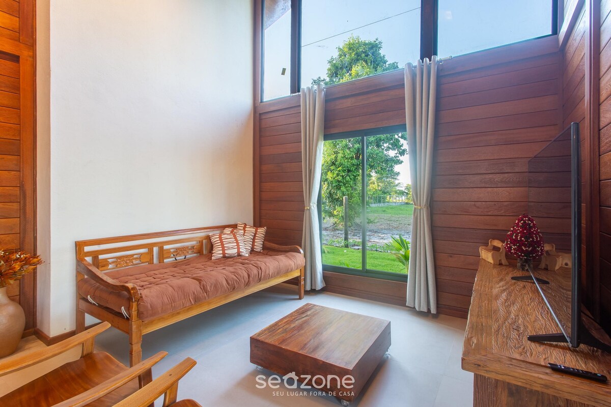 Jacumã fue diseñado con el máximo cuidado para aprovechar lo mejor del sol, la sombra y la brisa de Bahía. Tiene capacidad para 4 personas y es especialmente PERFECTO para una pareja. ¡Tus amigos de cuatro patas también son bienvenidos! ,el terreno está completamente cercado y protegido, puedes descansar tranquilo. Estamos a 600 metros de la playa de Jorge Leite ~ Taipu de Fora, una de las más hermosas de la península de Marau. Está lo suficientemente cerca como para escuchar el mar y, con un paseo rápido, llegas a él.