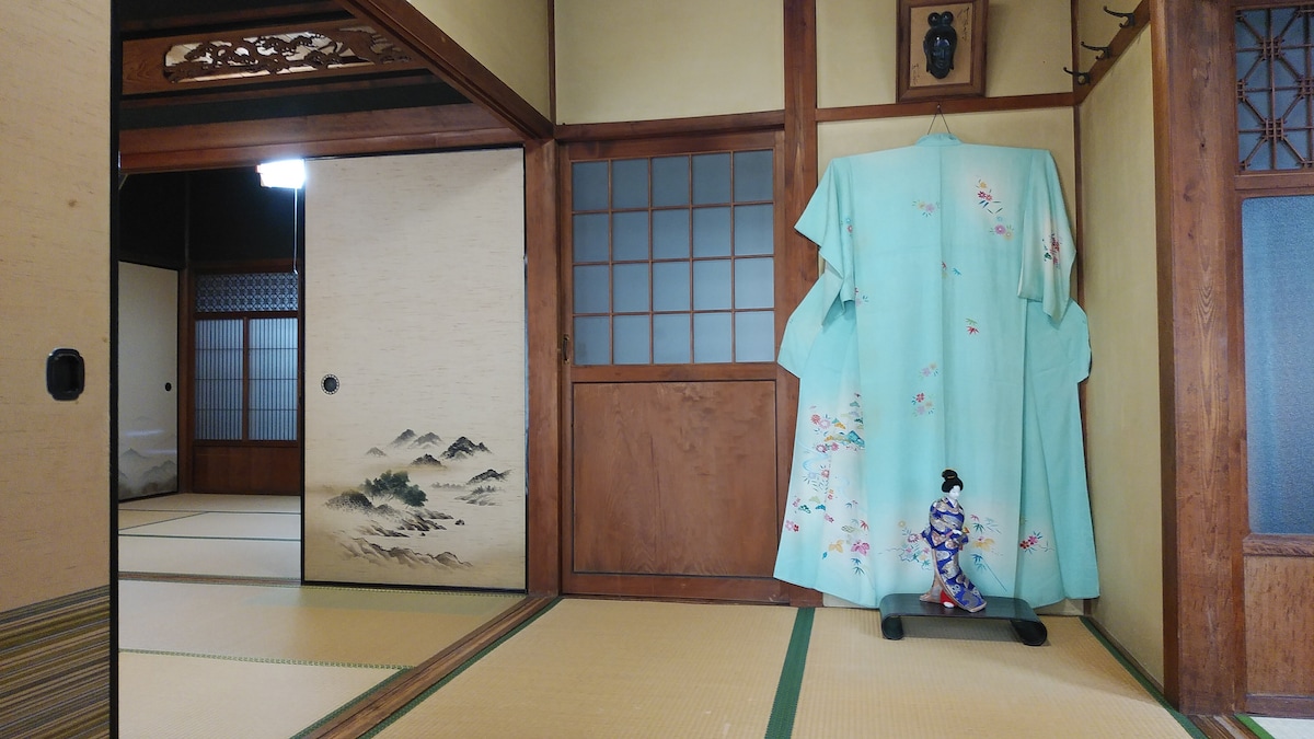 Nuestra casa es una casa tradicional de estilo japonés. Tiene 150 años y está en una ubicación muy tranquila. Estamos alquilando una casa. No se comparte con otros huéspedes. Hay 2 dormitorios (habitación Tatami) y 1 sala de estar, sala de juegos, baño, inodoro con ducha, todas las habitaciones son solo para ti. *Los niños no pagan si no necesitan cama y desayuno. Hay aire acondicionado en el dormitorio y en la sala de estar.
