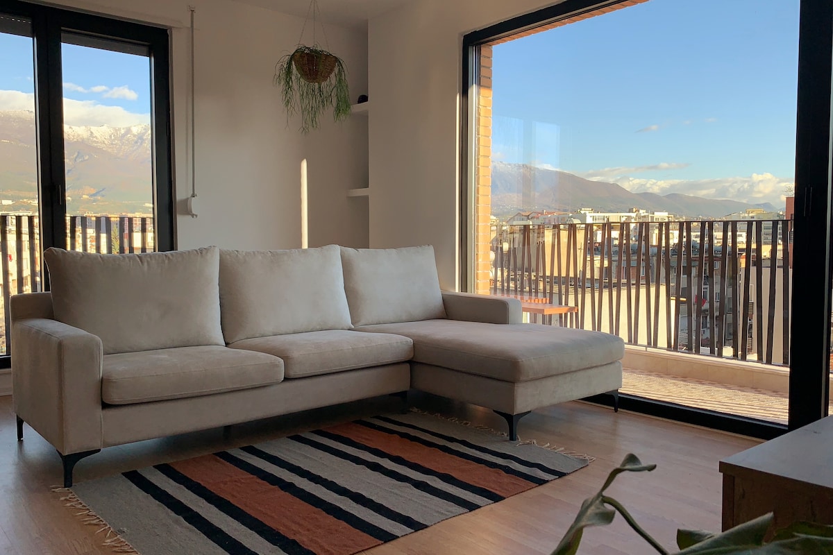 El apartamento ha sido diseñado con sencillez y elegancia para proporcionar el máximo confort. Cuenta con grandes ventanales que llenan las habitaciones con mucha luz natural y una vista increíble desde una de las nuevas zonas modernas de Tirana. Diseñado en estilo escandinavo, el apartamento tiene una gran sala de estar y comedor con todas las comodidades, un dormitorio grande y cómodo y una pequeña sala relajante. Disfruta del tiempo con tu familia y amigos en este agradable ático.