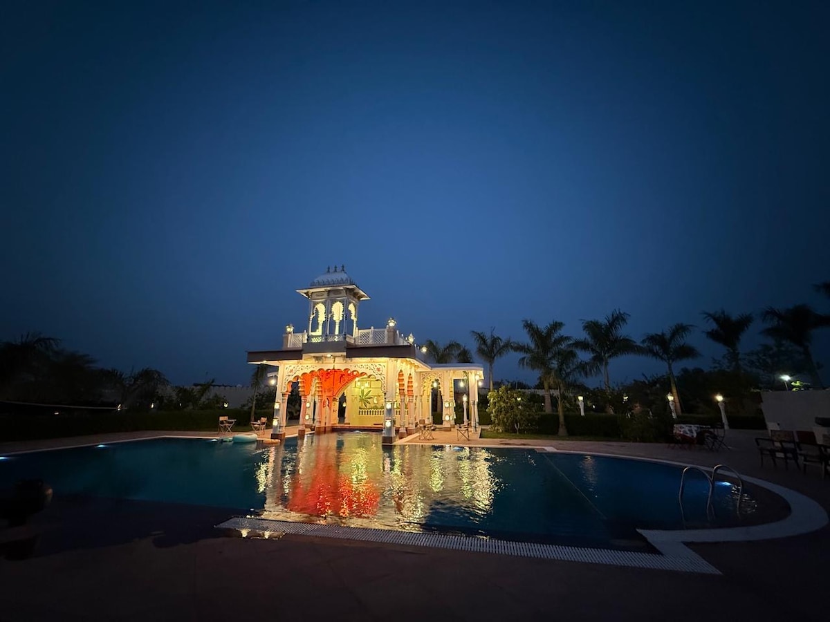 El departamento del estudio frente al río tiene vistas ininterrumpidas al frente del río Chambal Open. Puedes encontrar todo lo que necesitas para el entretenimiento y el uso de fiestas aquí.