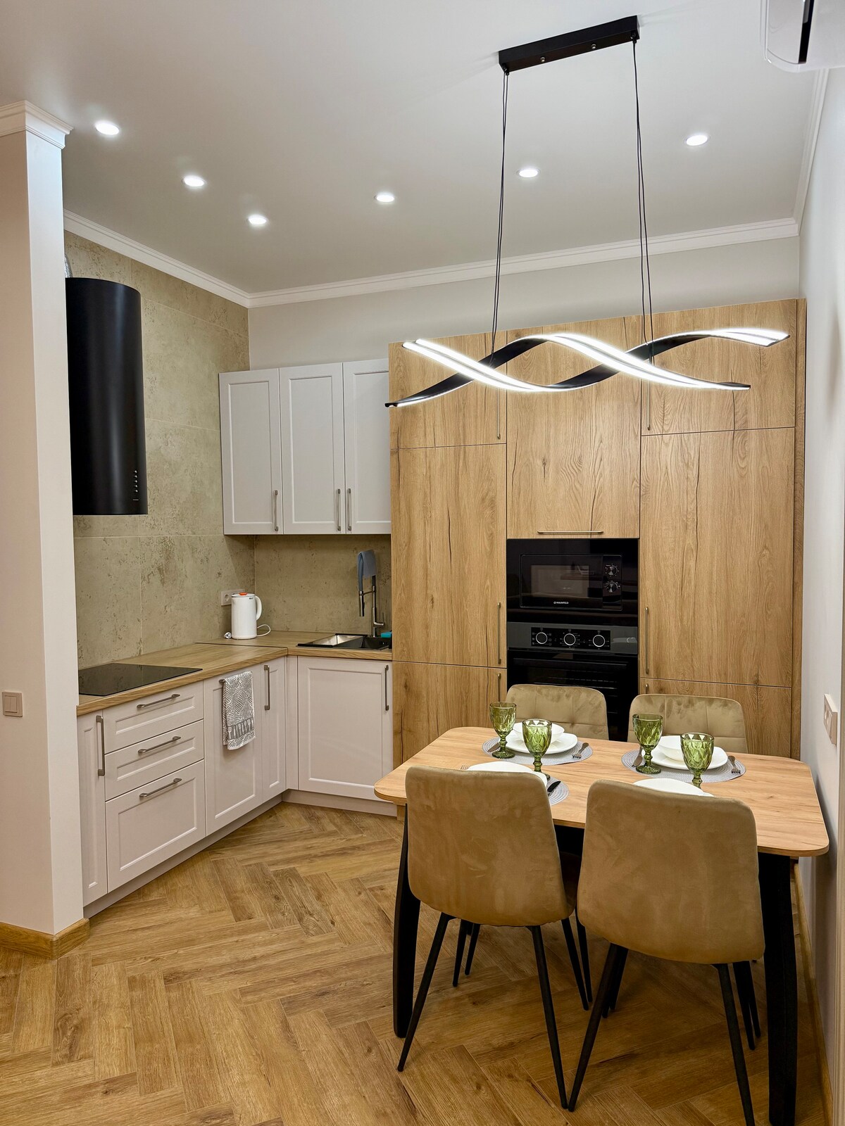 This brand-new apartment is designed for those who value style and comfort. The main highlight is the stunning mountain view you can enjoy right from the apartment. The apartment is equipped with everything you need for a comfortable stay: quality furniture, new appliances, a fully equipped kitchen, and spotless cleanliness. The neighborhood is quiet and safe, with shops, cafés, and convenient transport links nearby. It’s an ideal place to feel at home — but with the best view in the city.