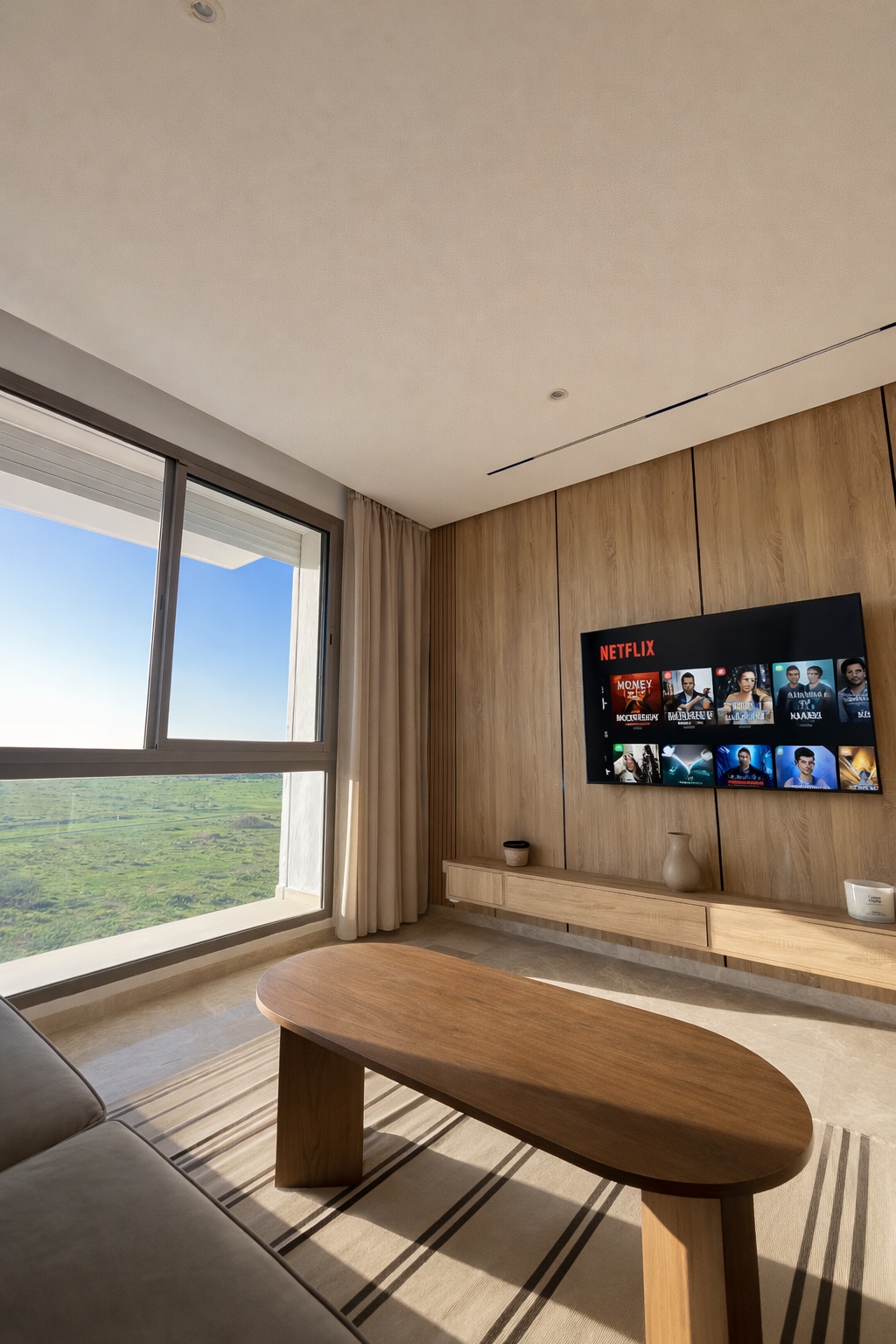 ¡Perla 403💎, un remanso de paz donde la elegancia de una residencia moderna se combina con la comodidad de los hoteles de 5* en el corazón de Casablanca! Relájese en una amplia sala de estar de diseño moderno, equipada con Smart TV de 55’ con Netflix e IPTV para noches de relajación absoluta. La habitación, un verdadero nido acogedor, le promete noches tranquilas y reparadoras ☁️ ¡Desde su balcón privado, admire las espléndidas puestas de sol sobre la ciudad, haciendo que cada momento de su estadía sea inolvidable! ✨