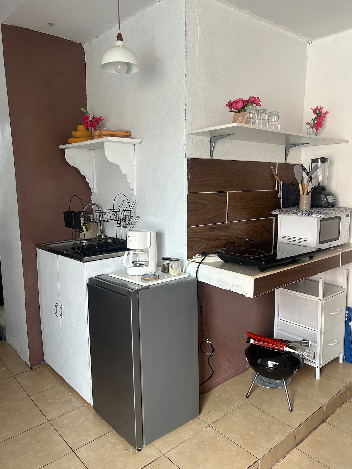 Mini departamento confortable y moderno en planta baja, ubicado en colonia residencial a espaldas de la UAT, a 20 minutos de la playa y centro de espectáculos en la laguna del carpintero. Cuenta con cama matrimonial, área de trabajo con wifi, baño privado, aire acondicionado, cocina con frigobar y horno de microondas. Entrada independiente autónoma. Se emiten facturas