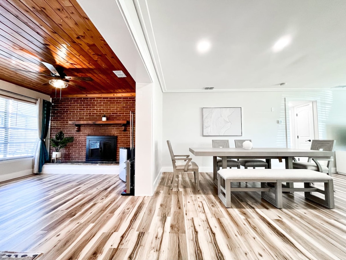 Alójate en esta espaciosa casa de 2 plantas con 3 camas y 2,5 baños justo enfrente del río Hillsborough y a pocos minutos del zoológico de Lowry Park y de los manantiales naturales. Perfecto para familias o grupos. Suelos de madera, gran salón familiar con chimenea. Electrodomésticos de acero inoxidable, cocina completamente surtida, armarios art déco, esta casa es tan elegante como cómoda y ofrece una estancia única. Sal a disfrutar de un spa climatizado de 24 pies, tu propia cancha de baloncesto pintada y un patio trasero cercado para una privacidad total