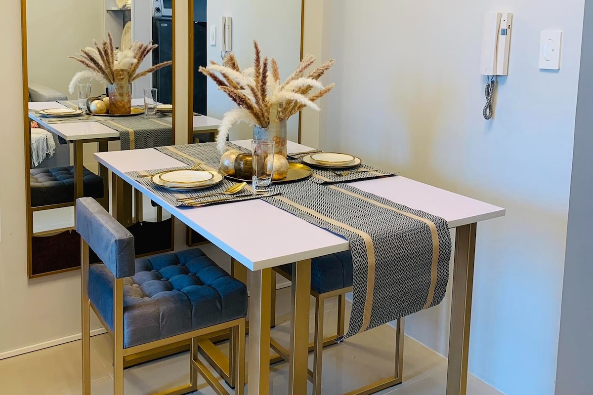 Discover our spacious and bright 1BR end unit with balcony in the newly built Tower 4, Fern Residences. Designed with you in mind, our luxurious boutique-hotel style unit features a fully-equipped kitchen, hotel quality mattress and beddings, convertible coffee to dining table, washing machine and fast WiFi. It is ideal for short and extended stay travellers and for those who just want to have a relaxing staycation.