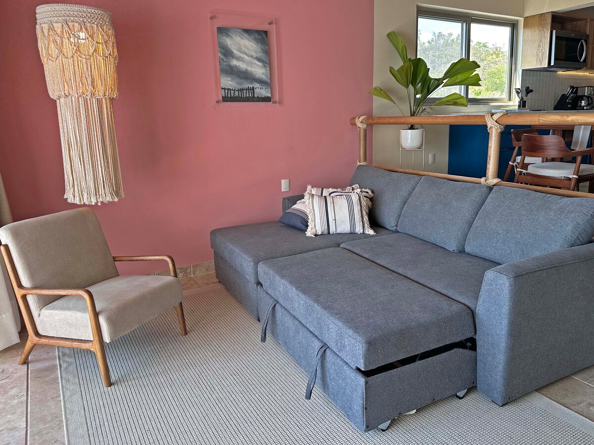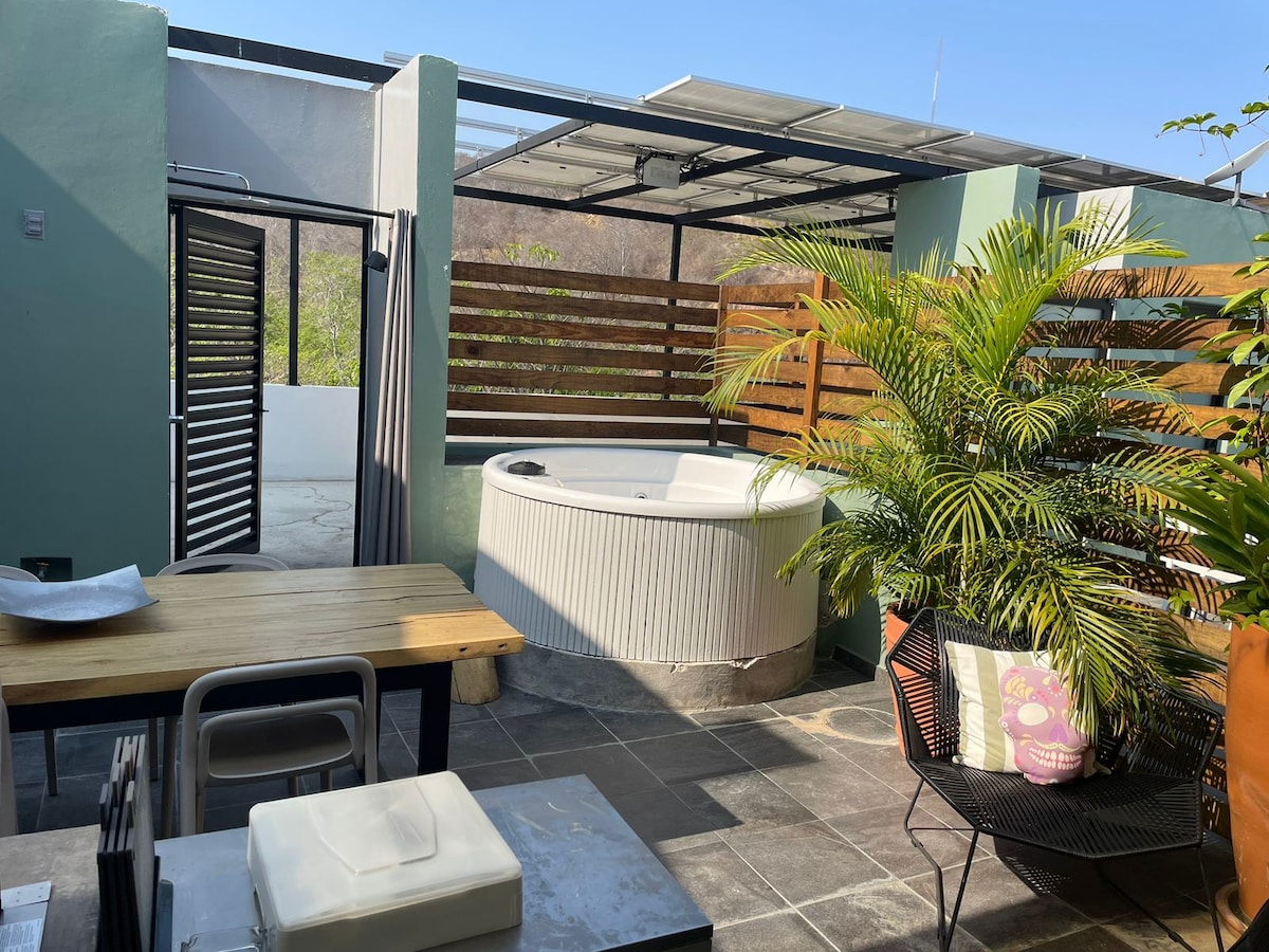 ¿Buscas una escapada tranquila o un lugar para trabajar de forma remota (conexión wifi rápida Starlink de 120-250 mbps) cerca de la playa y la ciudad en un apartamento cómodo, moderno y bien equipado? Este es el lugar para tí. Tus anfitriones hablan español e inglés y pueden conectarte con tus intereses… música, cocina, observación de aves, surf, clases de español… Avísanos. ¡Estamos deseando compartir Huatulco contigo! (Hay dos dormitorios separados y un loft con cama tamaño king y escritorio para usar como oficina).