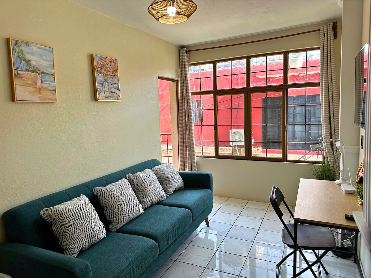 Relájate en este espacio tan tranquilo y elegante. El edificio se encuentra en el corazón de Degollado y encontraras gran variedad en comida y snack por la noche en la plaza principal. Cuenta con cocineta y elementos básicos de cocina, Refrigerador y Estufa de gas. Cama King Size, solicita un colchón individual en caso de ocuparlo. Balcon con vista al Templo y al exterior de la calle.