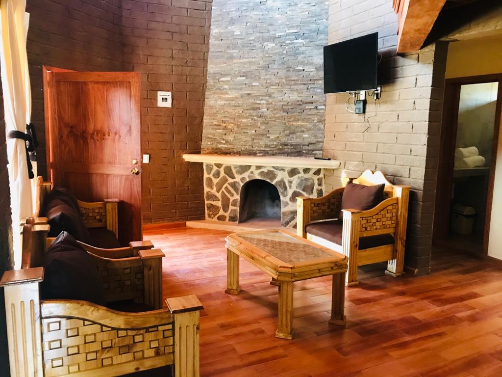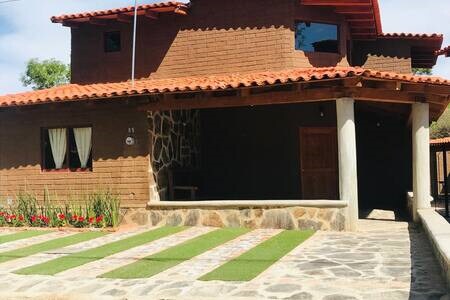 Una cabaña construida de adobe y madera, con espacios amplios y refinados para una convivencia familiar donde podrás pasar una noche en silencio con tranquilidad e intimidad. La cabaña cuenta con una amplia selección de juegos de mesa, ping pong, una amplia selección de películas en DVD rodeados de obras de arte para disfrutarse en una terraza volada con vista al jardín.
