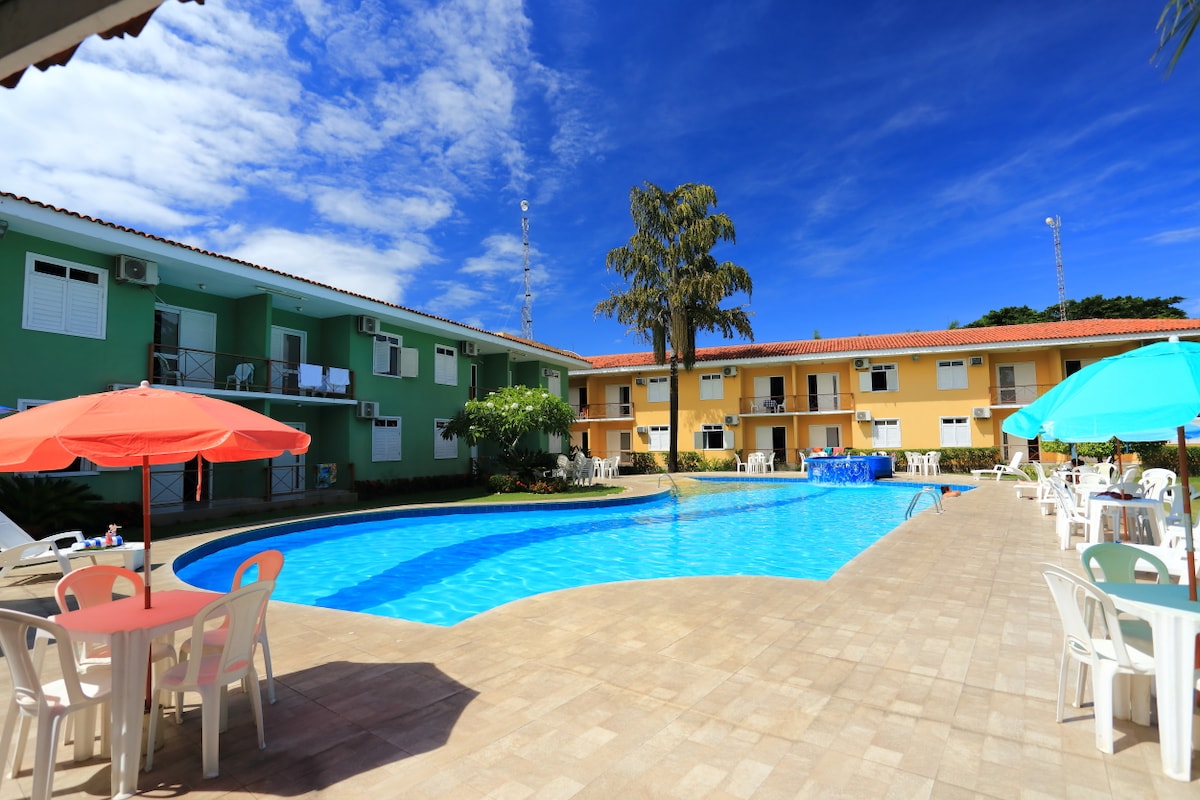 inmuebles recientemente renovados A solo 400 m de la playa de Taperapuã, con piscinas para adultos y niños, canchas de tenis, voleibol, gimnasio y sauna. WiFi gratuita. Las comodidades incluyen aire acondicionado, TV, teléfono y minibar. Todos los días se sirve un abundante desayuno bufé. El establecimiento se encuentra a 500 metros de la famosa playa de Axé Moi y a 1,8 km de Tôa Tôa. El centro histórico de Porto Seguro está a 7,2 km del hotel y el centro está a 7,1 km.