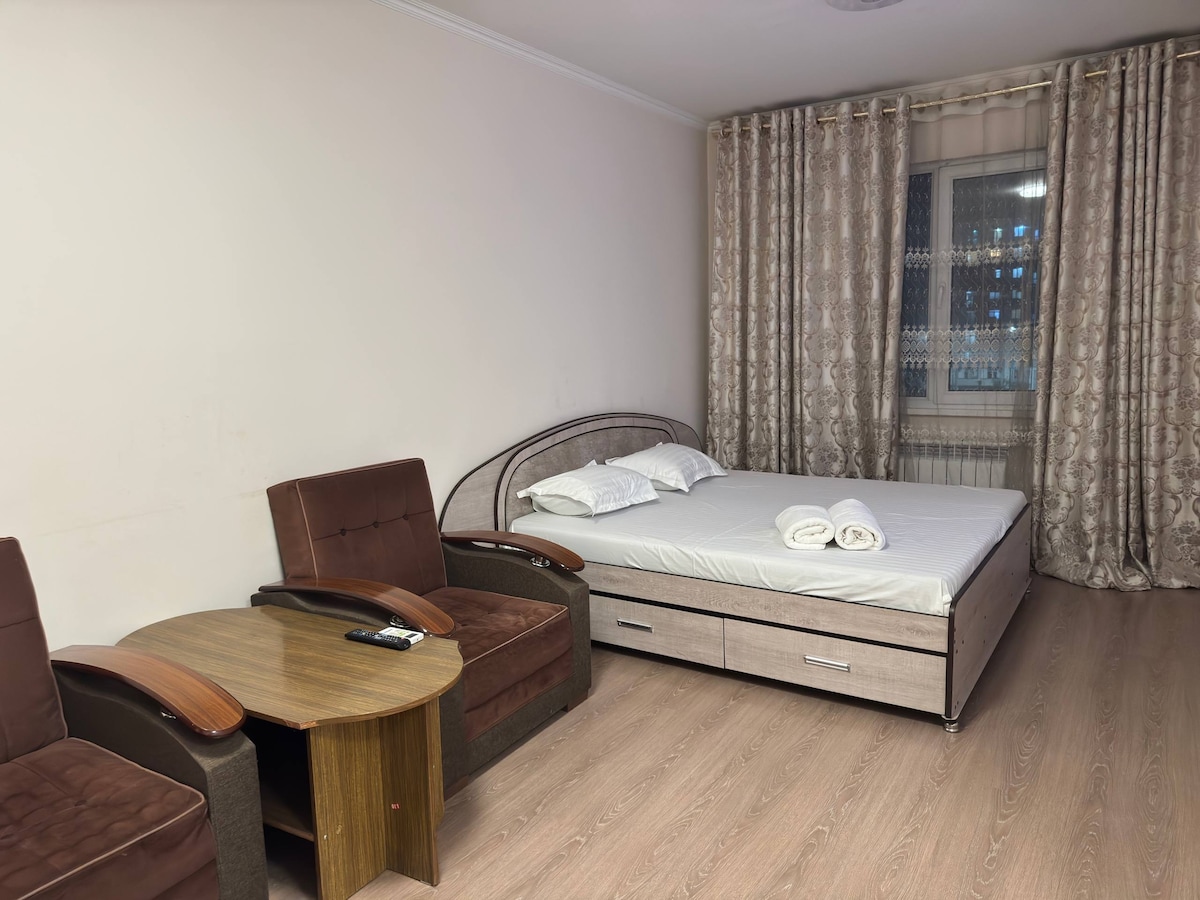 ¡Alójese un par de días o una semana! ¡Apartamento tipo estudio, 35 metros cuadrados, hay una puerta al dormitorio!¡Todas las condiciones están ahí, internet, electrodomésticos, cocina!Ideal para una persona, ¡pero adecuado para una familia pequeña! Cama en el dormitorio de una plaza y media (ancho 1,60), ¡sofá cama en el salón! edificio nuevo, patio vigilado, ascensor! cerca hay metro, supermercado, pizzería, cocina nacional, tiendas de bebidas alcohólicas! desde el centro de la ciudad en 7-10 minutos en taxi!