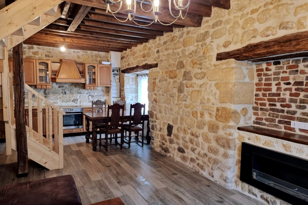 Magnífica casa con carácter; combinación de madera y piedra que le da a este lugar un ambiente agradable. Casa completamente independiente, situada en una zona tranquila y muy silenciosa, reformada, muebles y electrodomésticos nuevos, un pequeño jardín con barbacoa está a su disposición. Gran salón con cocina y comedor,3 dormitorios,baño con ducha y lavadora,aseo individual con lavabo aparcamiento ,wifi, NETFLIX