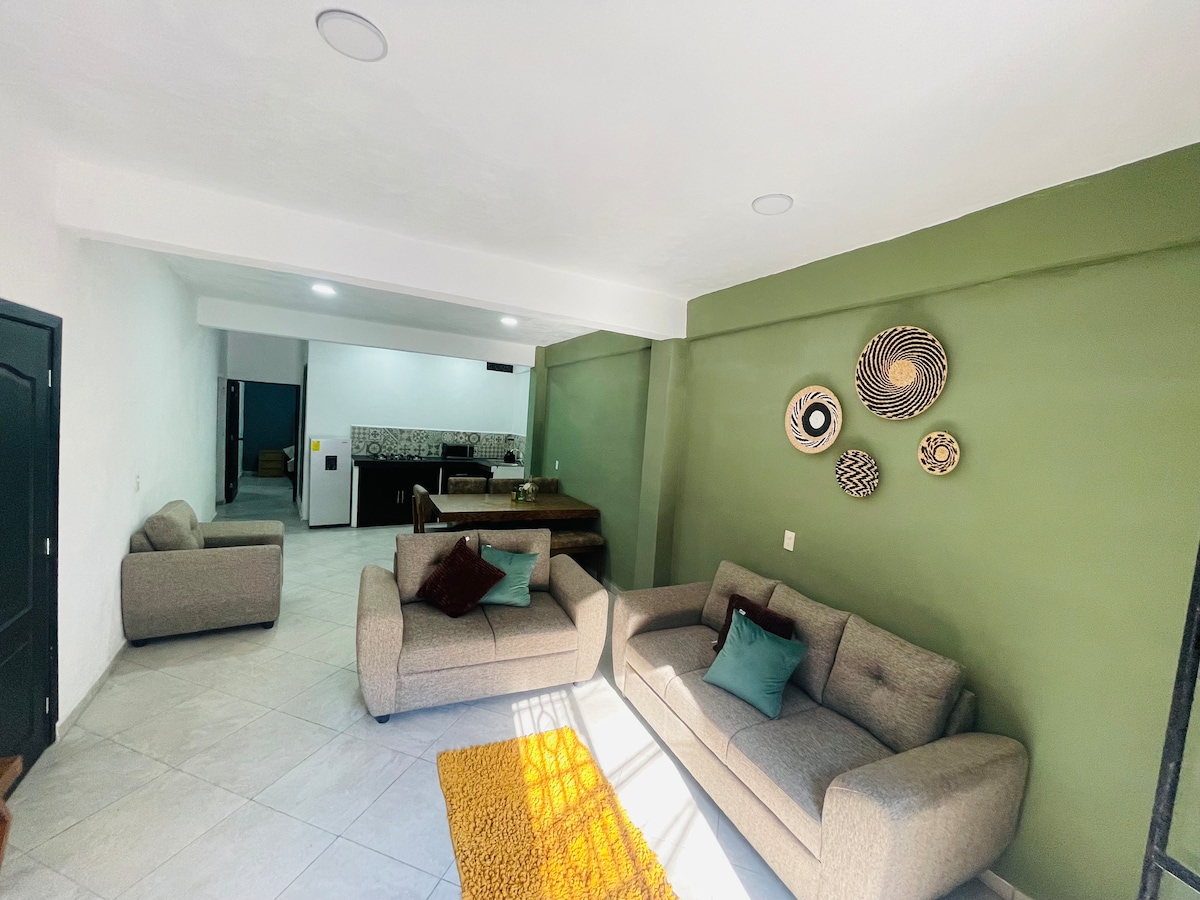 Encantador departamento a 5 minutos del centro de la ciudad, totalmente nuevo. El alojamiento ofrece 2 habitaciones, una linda terraza, una cocina pequeña totalmente equipada. A unos pasos del oxxo, tiendas, taquerias, farmacia y transporte publico. Un lugar de estacionamiento para tu auto.¡Todo lo que necesitas para una estancia agradable!