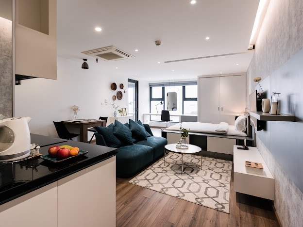Ubicado justo al lado del centro de Hanói, nuestro departamento pertenece al edificio de clase alta D.'Le Roi Soleil con arquitectura artística única, instalaciones excepcionales y la encantadora belleza natural de West Lake. - La sala de estar, la cocina y el dormitorio están abiertos entre sí. - A unos 20 km del aeropuerto de Noi Bai. (GRATIS de 1 vía) - A solo 5'a pie de Westlake y a 15' del lago Hoan Kiem, el casco antiguo. - Edificio Lion Mall con servicios públicos de lujo. El departamento tipo estudio es adecuado para 1 viajero o 1 pareja