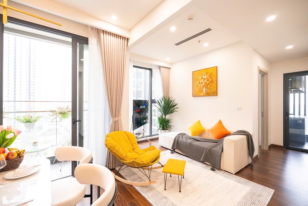 Este es un departamento extremadamente lujoso, limpio y cómodo en el área. Construido y cuidado por el inversionista de Vinhome. Justo al lado del apartamento se encuentra el jardín de barbacoa, piscina y la parte inferior hay extremadamente muchos servicios públicos, como parque infantil, así como puestos de comida.