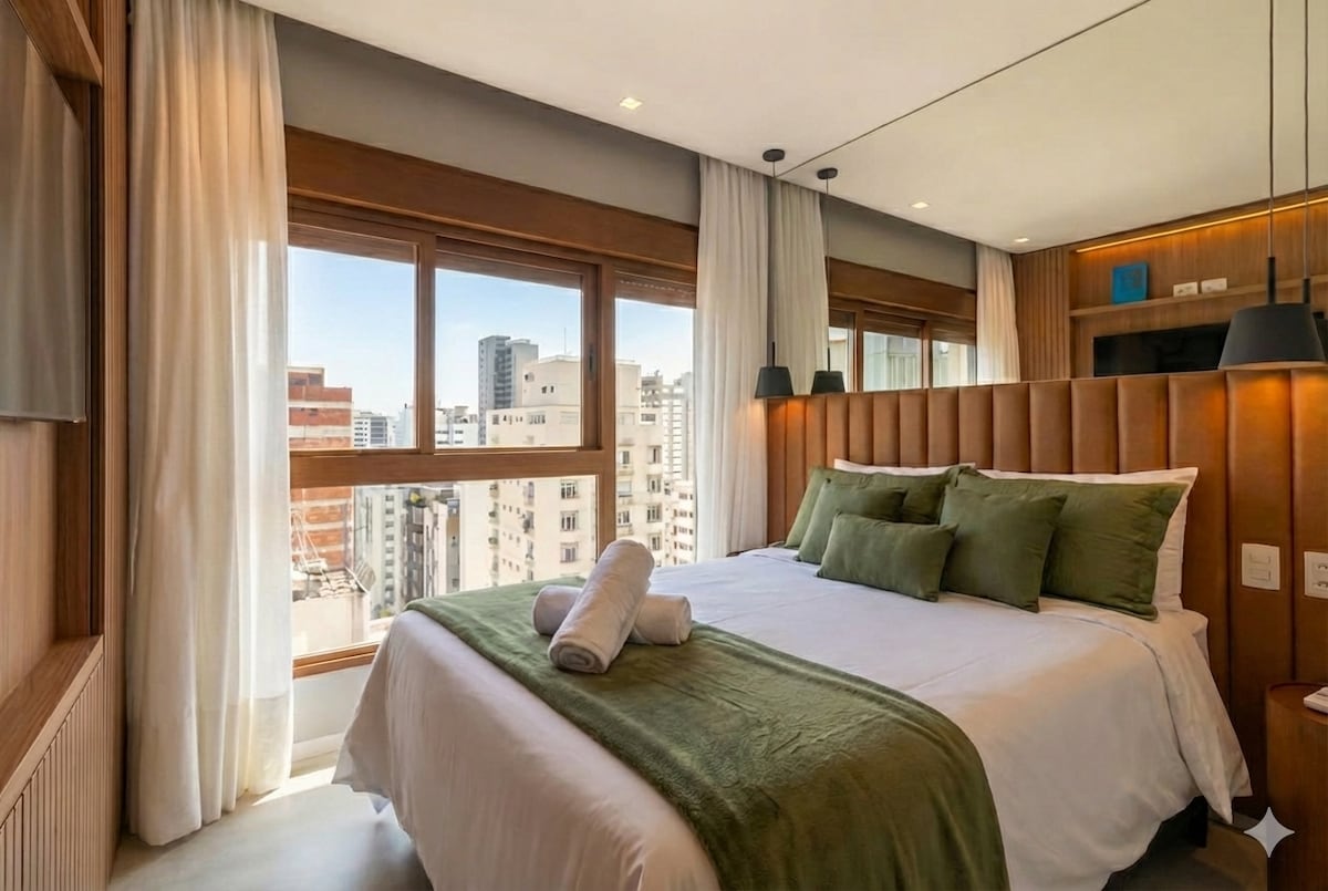 Studio Moderno no Coração de São Paulo Bem-vindo ao seu refúgio no coração de São Paulo! Localizado próximo ao metro Trianon, este elegante studio oferece conforto e conveniência a poucos minutos da Avenida Paulista, MASP, shoppings e os melhores restaurantes da cidade. 🏡 O espaço ✔️ Studio moderno e bem decorado ✔️ Quarto aconchegante com cama de casal ✔️ Banheiro com ducha quente e toalhas macias ✔️ Ar-condicionado 🚫 Importante: As áreas comuns do prédio não estão disponíveis para uso.