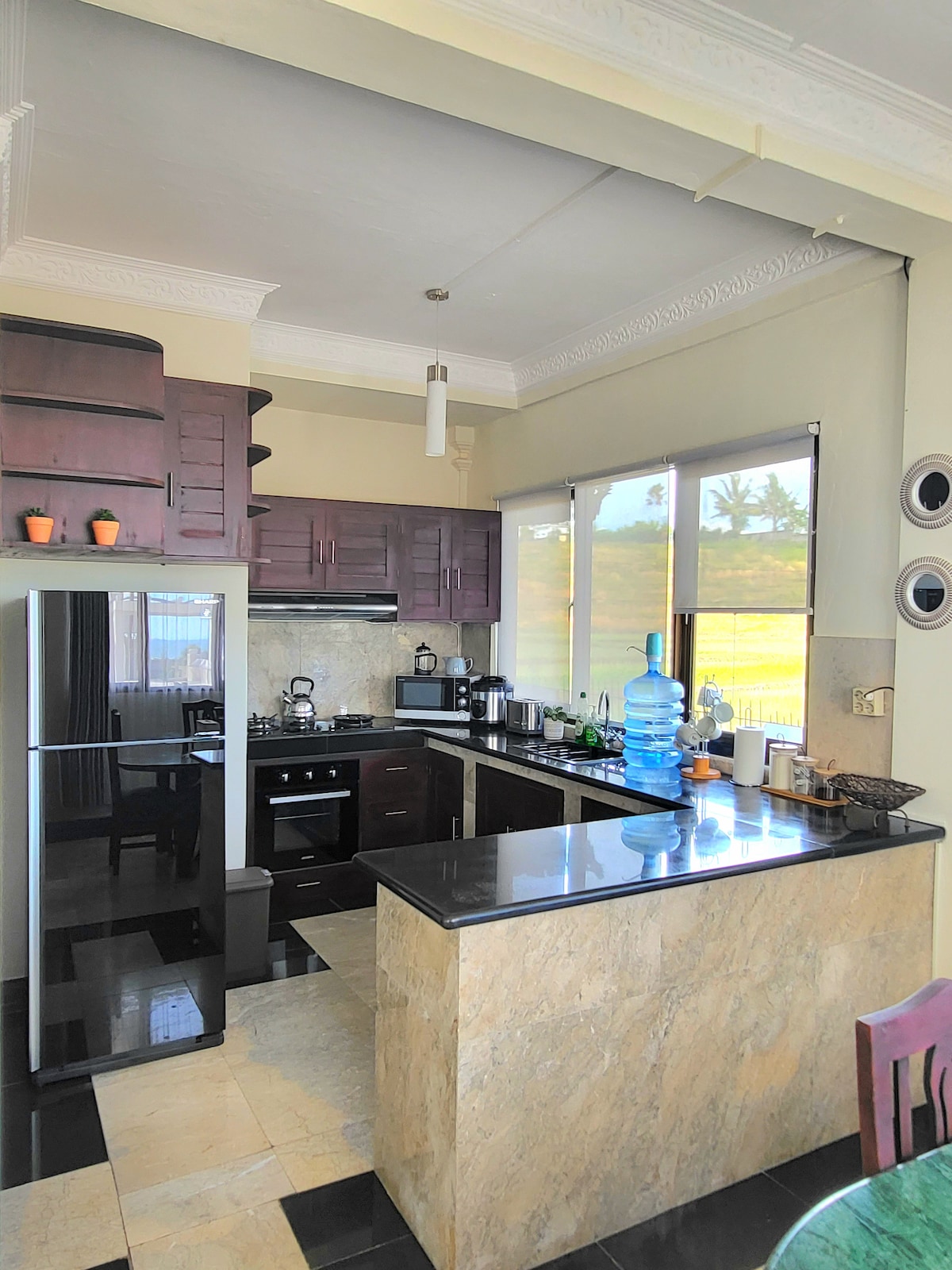 Enjoy a tranquil and authentic Balinese stay in this private 2-bedroom home nestled in the heart of West Bali. With a breathtaking rice field view & a warm morning sunrise, it’s the perfect escape for guests seeking peace, comfort, and local charm. - Spacious living room & fully equipped kitchen - Rice field view - Peaceful sunrise atmosphere every morning - Only minutes away from Delod Brawah Beach - a minute drive to a24-hour minimarket - Near the lively Tegal Cangkring traditional Market