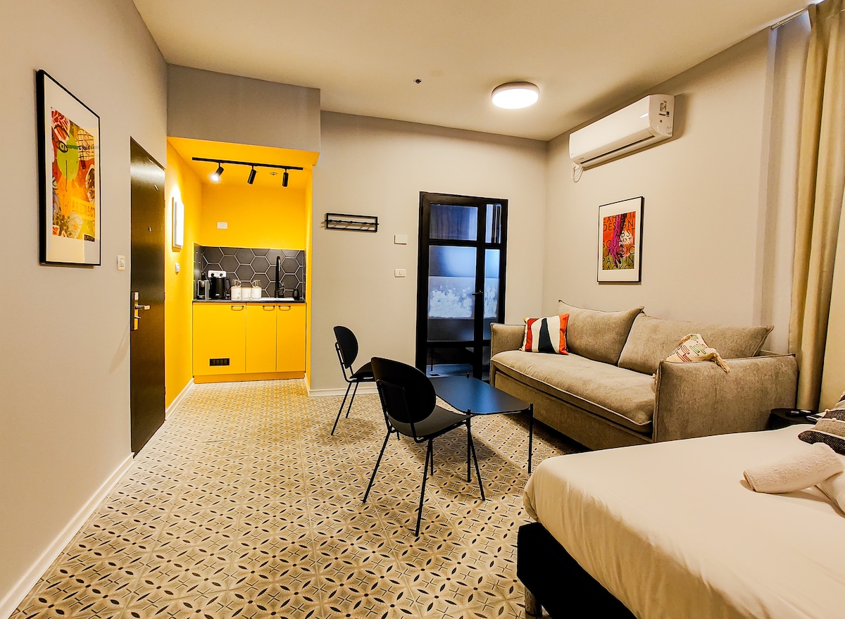 Rena’s House is a stylish apartment hotel in the heart of Tel Aviv, where the city’s best nightlife, art, and food scene are right outside your door. Designed for independent travelers, everything runs fully online with smooth self check-in. There’s no reception and no elevator—just smart access, privacy, and a relaxed urban vibe. Inside, you’ll find comfortable beds and a calm space to recharge after exploring the city. Ideal for up to 4 adults, or 2 adults with up to 3 children. With bus stops
