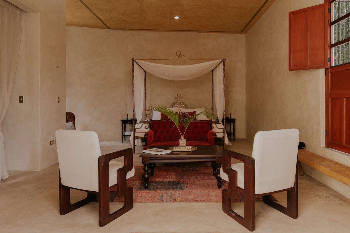 Relájate en este espacio diseñado con ojo por el detalle y amor por la historia de este pueblo mágico. Esta casa de 2 habitaciones es muy abierta para disfrutar del clima caluroso y refrescarse en la piscina. Una cena en el rooftop puede ser mágica.
