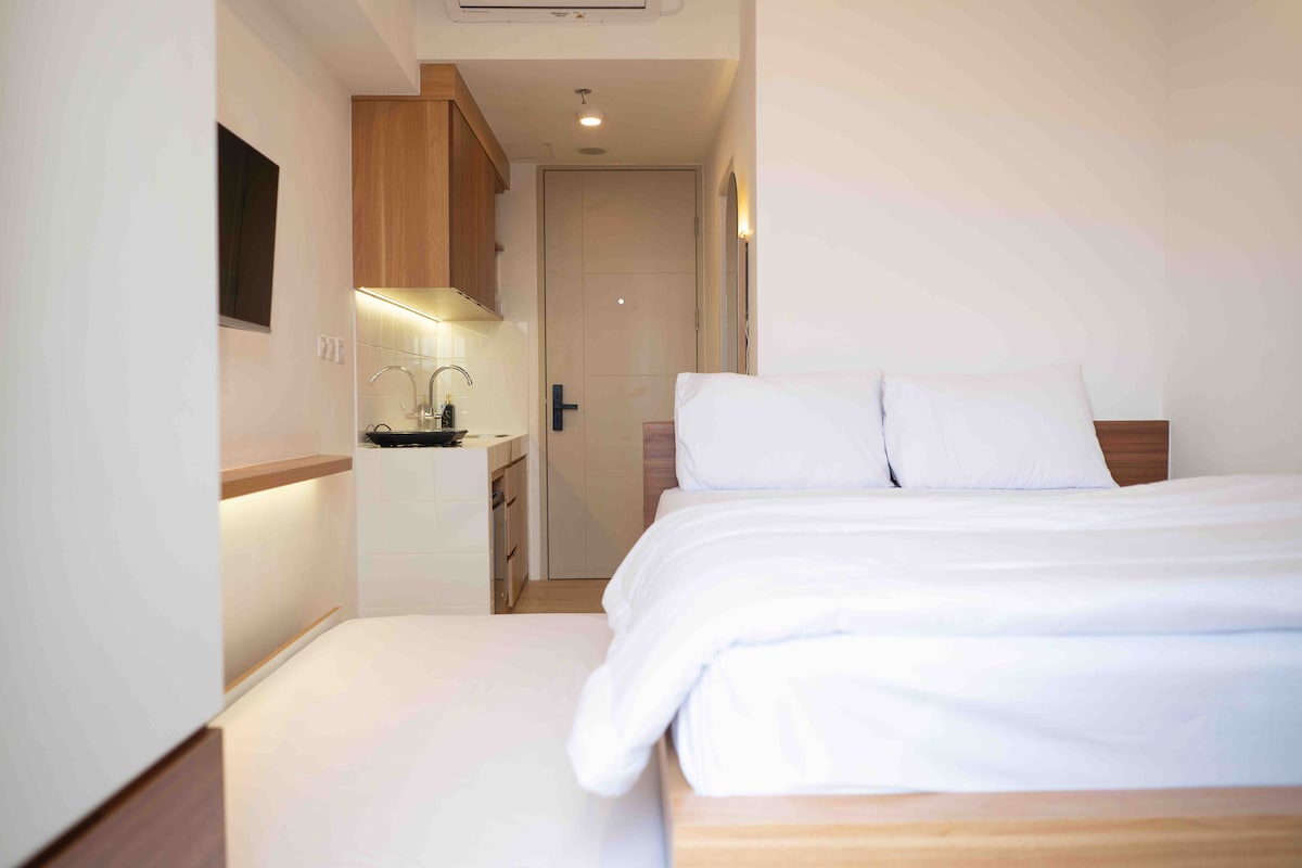 Disfruta de una acogedora escapada minimalista en Tokyo Riverside PIK 2, donde el diseño moderno se une a la comodidad. Perfecto para viajeros solos o parejas, este elegante estudio ofrece una cama tamaño queen, cocina, televisor inteligente y wifi, ideal para trabajar o descansar. A solo 1 minuto a pie de un centro comercial al aire libre, un supermercado y más de 90 cafeterías y restaurantes, con Aloha Pantai Pasir Putih, Pantjoran PIK, NICE PIK 2 y más cerca. Limpio, cómodo y práctico: tu estancia perfecta cerca del aeropuerto.