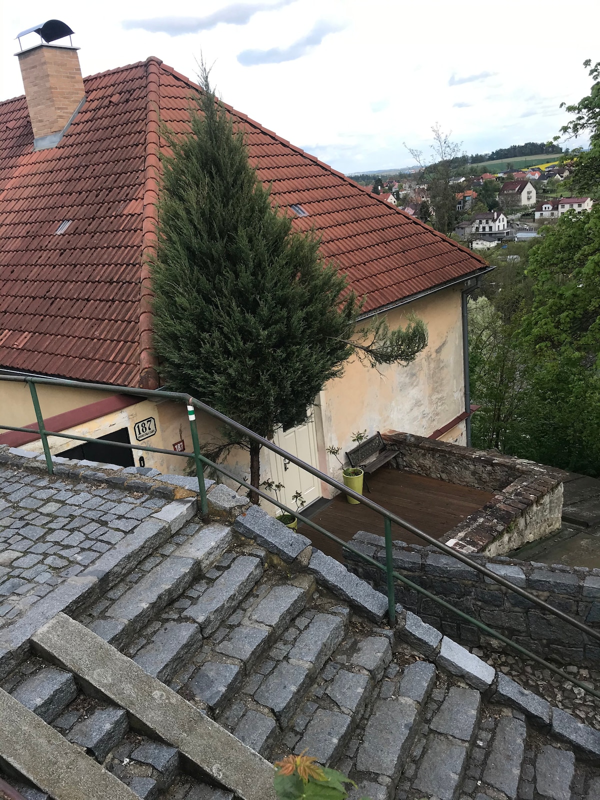 Apartamento soleado de un dormitorio con cocina pequeña, baño privado e inodoro. La casa construida alrededor de 1830 sobre los cimientos de la puerta medieval de la ciudad en el camino "Svatá Anna" desde Čelkovice, está justo debajo de las paredes en la ladera sur sobre el valle del río Luzhnice, a 2 minutos caminando de la plaza principal. Servicios del baño: bañera grande y ducha. Estacionamiento público a 30 metros de la casa (precio desde 40,- CZK/día). La puerta principal tiene un teclado (el código se enviará por mensaje de texto) = llegada autónoma. Tábor (¡no en Praga!)