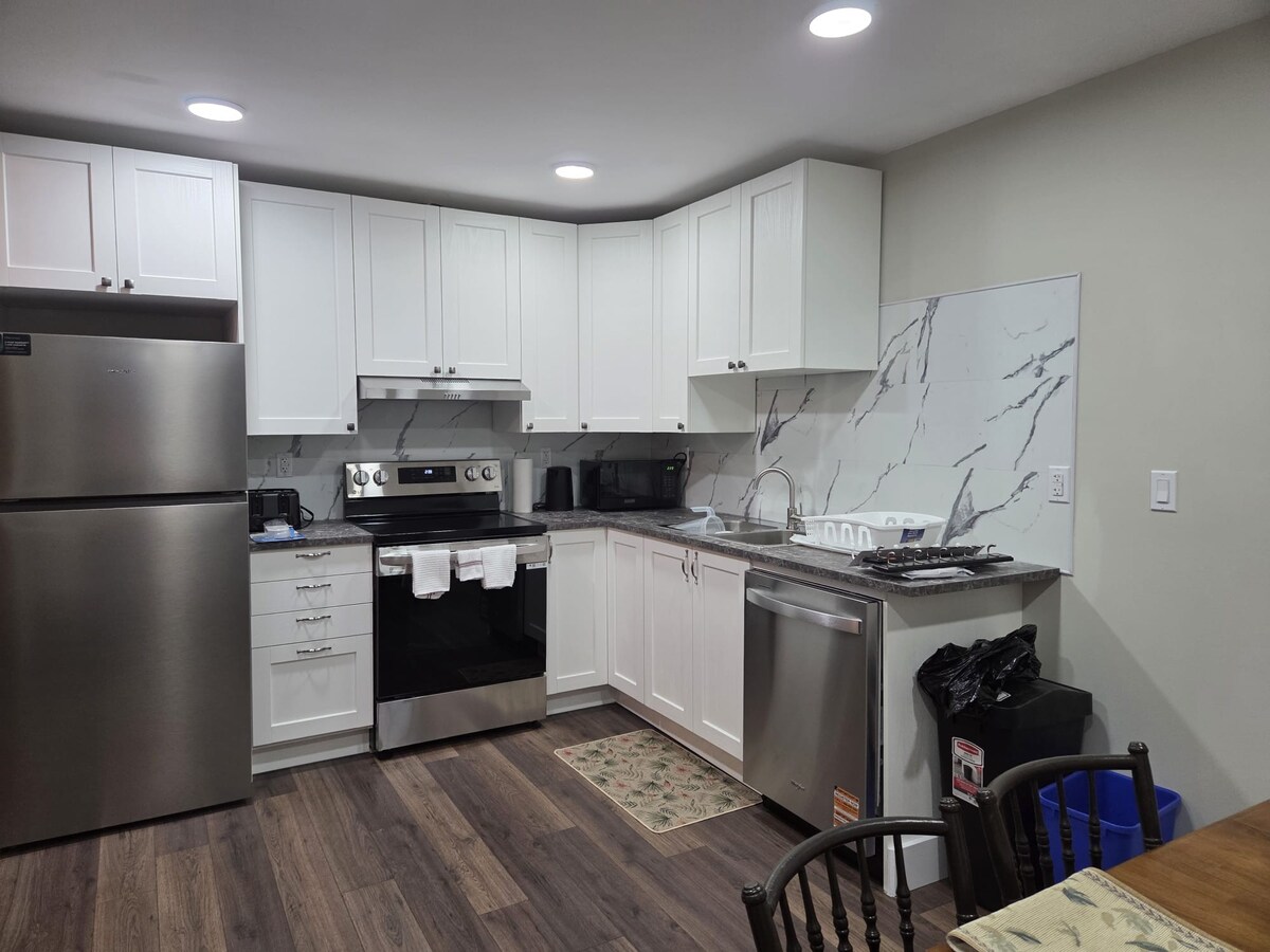 ¡Apartamento en la planta principal con dos dormitorios, un sofá cama, comedor separado, baño de 4 piezas, lavandería en suite y uso exclusivo del patio trasero vallado con terraza! Cada habitación tiene 1 cama tamaño queen. Sofá cama en el salón.