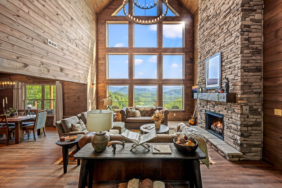 Escápate a Three Pines Lodge, un impresionante refugio moderno bañado por la luz natural y rodeado de impresionantes vistas a la montaña. Disfruta del paisaje a través de amplias ventanas o desde los espacios de entretenimiento al aire libre. Diseñada para todas las edades, esta lujosa casa de vacaciones ofrece comodidades de primer nivel, como jacuzzi, juegos de arcade, bicicleta Peloton y mucho más. Experimenta una comodidad inigualable y crea recuerdos inolvidables con tu familia. ¡Reserva hoy mismo tu escapada a las Montañas Humeantes en Three Pines Lodge!