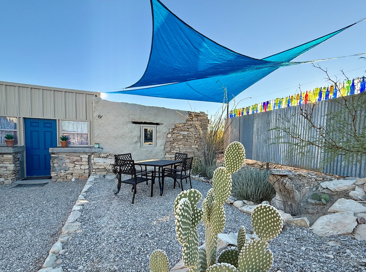 Camina hasta la cena en un salón. Casa Piedra es tu refugio con aire acondicionado. A solo 10 minutos (7.8 millas) de la entrada principal Maverick Junction del Parque Nacional Big Bend. Perfecta para viajeros solos o parejas, la casita cuenta con una cama king muy cómoda y baño privado. Camina al Starlight Theatre para escuchar música en vivo y tomar una margarita, o empieza el día con un café y burrito del café local. Desconéctate y vive la magia del desierto