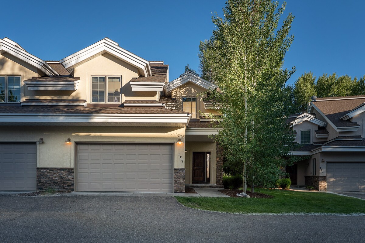 Una espectacular casa adosada de 3 dormitorios, 3,5 baños, tres niveles, junto a un arroyo con vistas directas a la cordillera Teton. Casa de 2200 pies cuadrados decorada profesionalmente y con capacidad para diez personas. Disfruta de las comodidades de una casa de vacaciones de lujo que incluye una escalera de caracol, suelos de travertino, encimeras de granito, armarios de caoba, chimenea, jacuzzi, plano de planta abierta, escalera circular, mesa de juegos, TV vía satélite, 2 terrazas, vistas espectaculares, gran jacuzzi y mucho más.