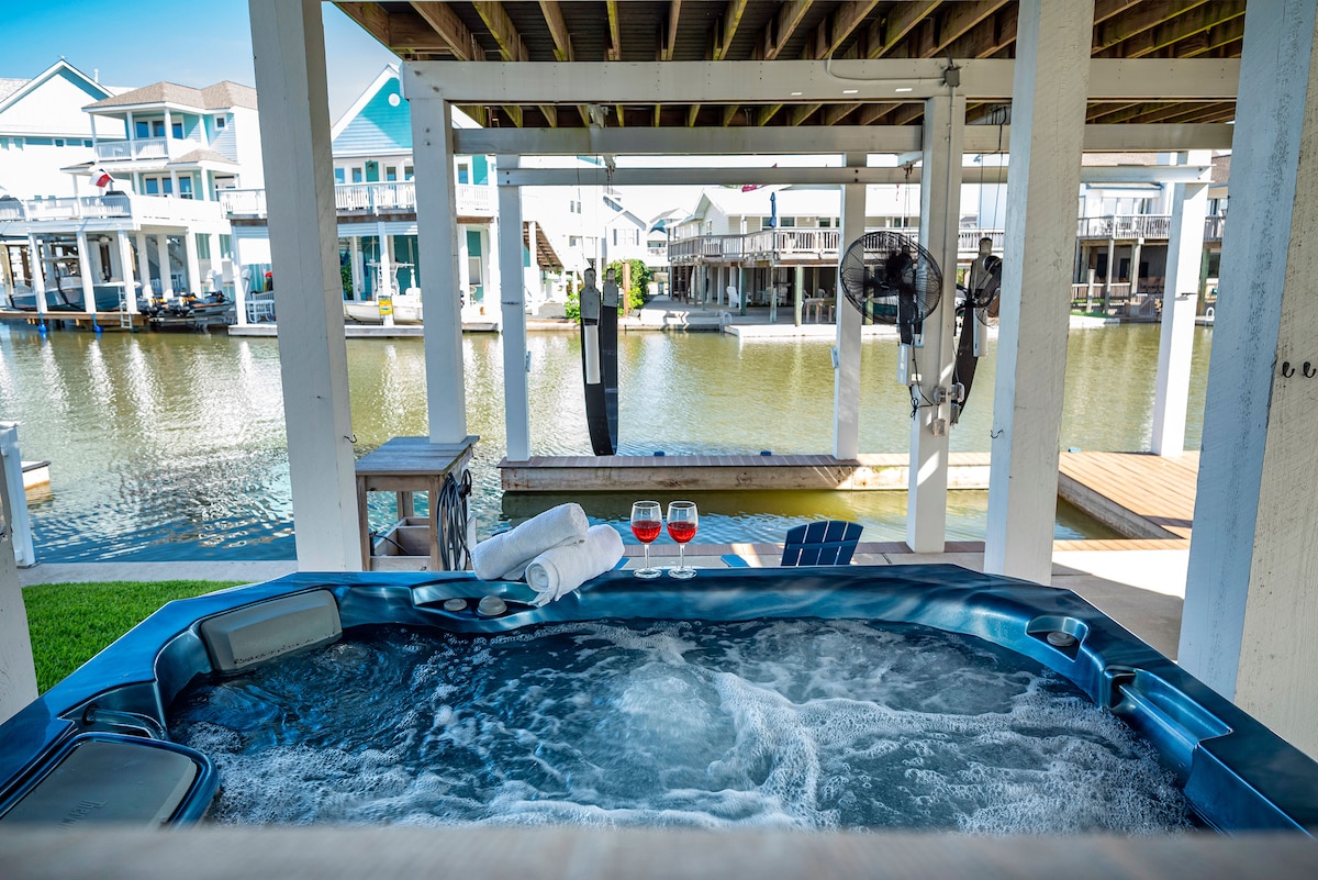 Casa frente a la bahía bellamente decorada con una amplia terraza, muelle de 200 pies para pesca/navegación y piscina. Esta casa de 3 pisos se encuentra a poca distancia a pie de los mejores restaurantes y bares de Kemah. Esta espaciosa casa cuenta con cuatro dormitorios y cuatro baños completos. Tanto si quieres sentarte en el balcón y disfrutar del amanecer con una taza de café, darte un chapuzón en la piscina o ir a pescar al muelle, ¡es la escapada perfecta para que las familias se relajen y pasen tiempo de calidad!