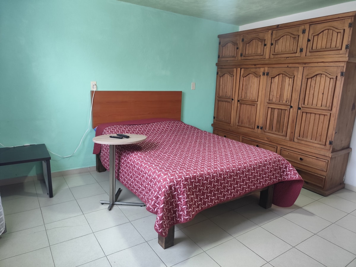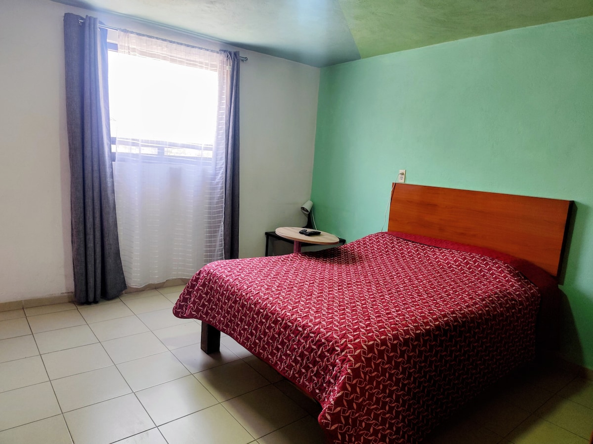 Disfruta de la sencillez de este alojamiento sobre la avenida principal de la colonia. Ideal para profesionistas, estudiantes, maestros que visiten la universidad de Chapingo. Cuenta con una recámara con cama matrimonial, Smart TV. Sala-comedor con cocineta con parrilla y gas disponible, refrigerador y microondas. Baño privado. En la planta baja hay una tienda miscelánea y una cocina de comida económica. No contamos con estacionamiento