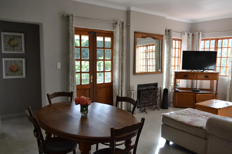 La unidad incluye una chimenea, un gran televisor inteligente con DStv Premium, Wi-Fi, una caja fuerte, baño privado con ducha, una cocina totalmente equipada con nevera, placa de gas, horno microondas de convección, tetera y cafetería, Nespresso, comedor y/o espacio de trabajo. Hermosas vistas a la montaña te esperan en tu propio patio privado, jardín y patio.