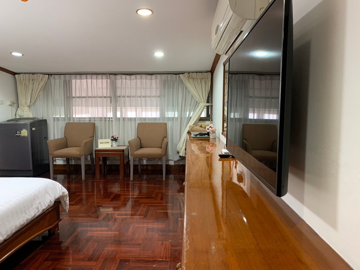 El apartamento con servicios se encuentra en la calle principal de la colina Pratumnak, la mejor zona residencial de Pattaya ( tranquila, bonita vista, a 5 minutos de la calle peatonal, el jardín de la ciudad, la mejor pista de atletismo justo detrás de nuestro plc). Te encantará nuestro enorme y moderno lujo de 200 metros cuadrados. Solo tenemos 6 unidades. Todas las unidades tenemos Jagucci privado en el balcón, cocina pequeña para cocinar ligero en caso de necesidad, lavadora, wifi, televisión por cable,etc. Además de una limpieza gratuita dos veces por semana para que la habitación esté limpia y cómoda. También tenemos una gran piscina las 24 horas. Reserva ahora.