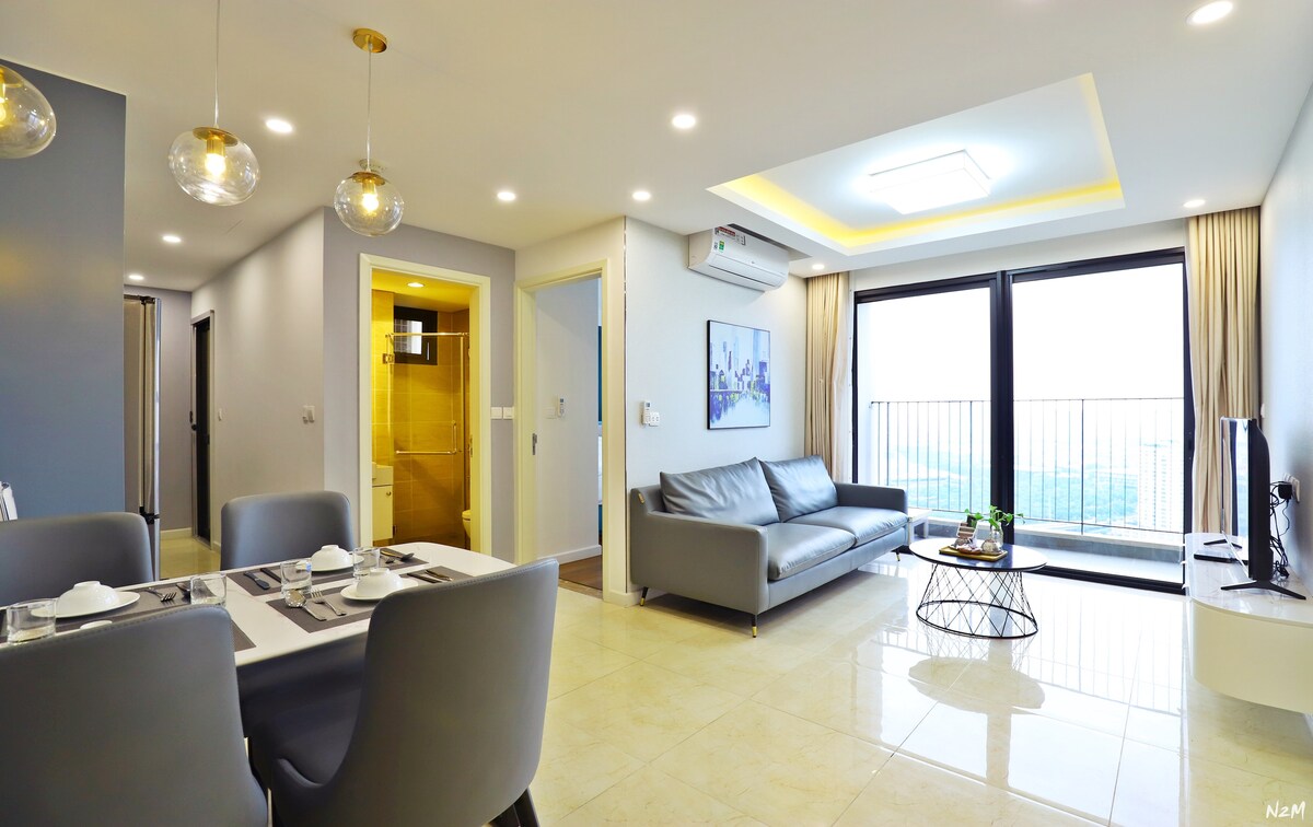- Esta es una cadena de apartamentos modernos ubicados en los lujosos complejos de apartamentos de Hanói. Vinhomes D'Capitale, uno de los mejores lugares para vivir, cada apartamento está decorado con buen gusto, limpio y reluciente y tiene una gran vista a la ciudad, con vistas al lago desde los mejores pisos. Ofrecemos alojamiento perfecto para parejas, familias o viajeros solteros. - Este nuevo apartamento tiene 3 camas tamaño queen, 2 baños privados, sala de estar con cómodo sofá para que te relajes con un televisor inteligente de 60 pulgadas.
