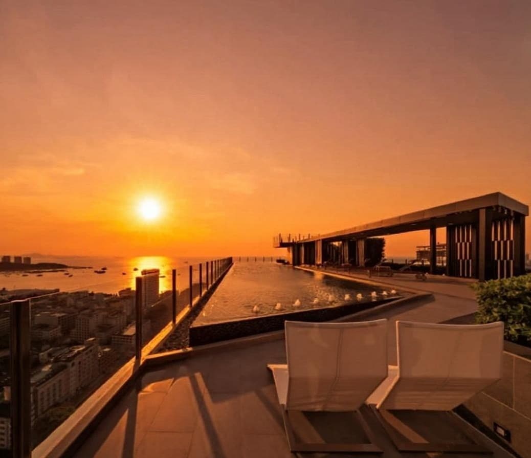 La base central de la ciudad, piscina infinita famosa en internet con vista a la bahía de Pattaya