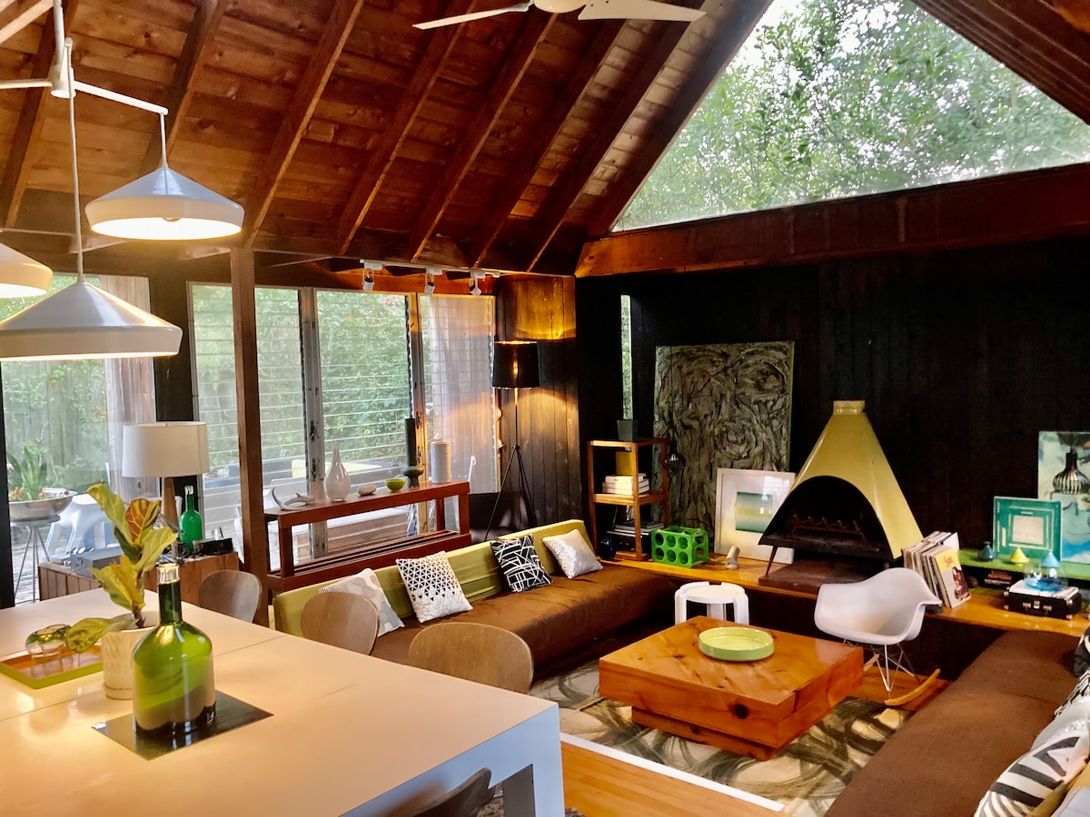 Cabaña tipo estudio (aprox. 4,1 x 4,6 m) Funcional, básica, rústica y evocadora: es solo una pequeña cabaña en el bosque. La cabaña solo tiene capacidad para 2 personas como máximo. Cama tamaño queen (sábanas, mantas) Baño (ducha/toallas) Cocina americana (nevera, microondas, fregadero, lavavajillas, platos, cubiertos, vasos) Aire acondicionado (unidad de ventana) Ventilador Televisión básica Internet Sillas de playa/sombrillas Ducha exterior The Pines es principalmente una comunidad gay, pero acogedora para todos. Nos encantan nuestros ciervos y ardillas salvajes, pero no se admiten mascotas en la cabaña.