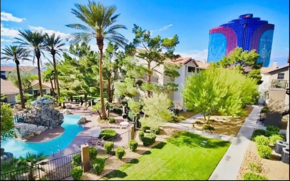Las mejores vistas de Las Vegas te esperan en esta hermosa suite de 1 cama totalmente equipada en el piso 19 con 2 balcones. La espaciosa suite con cocina pequeña, chimenea y bañera de hidromasaje independiente eep es toda tuya para que la disfrutes. Las comodidades de toda la propiedad de Palms Place & Palms Hotel están a poca distancia en ascensor: ¡los restaurantes, el club de salud y el spa, la piscina están aquí para mimarte! La franja está a un corto trayecto del hotel condominio Palms Place. ¡Reserva hoy y disfruta del paraíso!