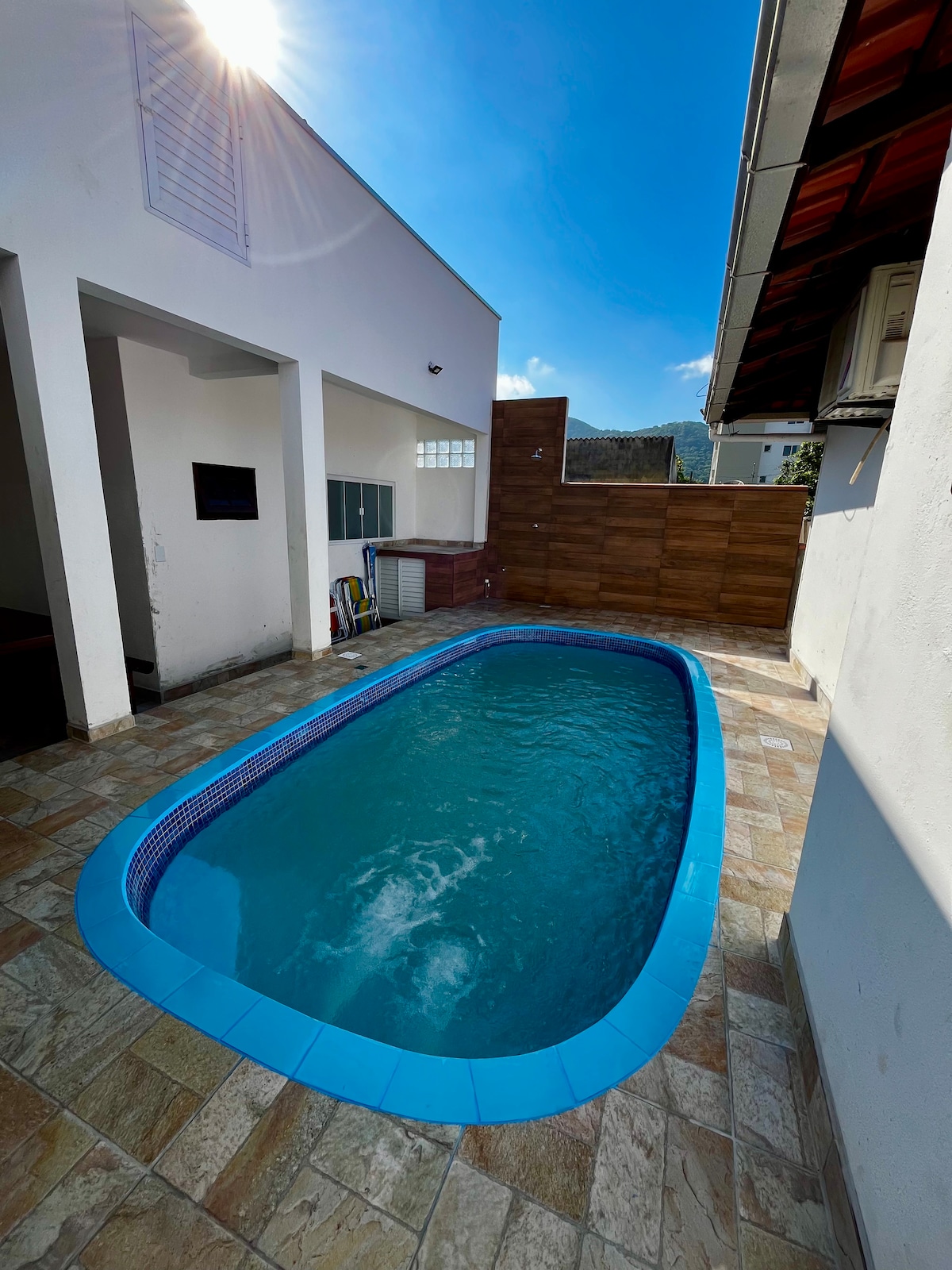 Casa con piscina, zona gourmet con lavabo, barbacoa, smart TV, sonido y cocina completa, 3 suites y 1 habitación más. Sala con TV por suscripción, Netflix, Disney+, Globoplay, HBO max y net 1000gb Wi-Fi en toda la casa e internet por cable en todas las habitaciones y sala de TV, duchas y grifos con calefacción, patio para dos o tres coches, seguridad y mucha comodidad nuestra mayor prioridad.