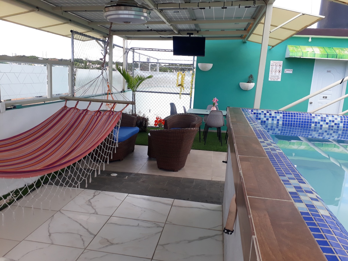 Ven y disfruta del lujo y la comodidad en este hermoso espacio con Picuzzy privado y en una de las mejores zonas de la ciudad. Cerca del mar, a unos pasos del malecón de la Avenida España. Este espacio de diseño encantador nos envuelve y nos promete una estadía mágica. No querrás salir de aquí!!!