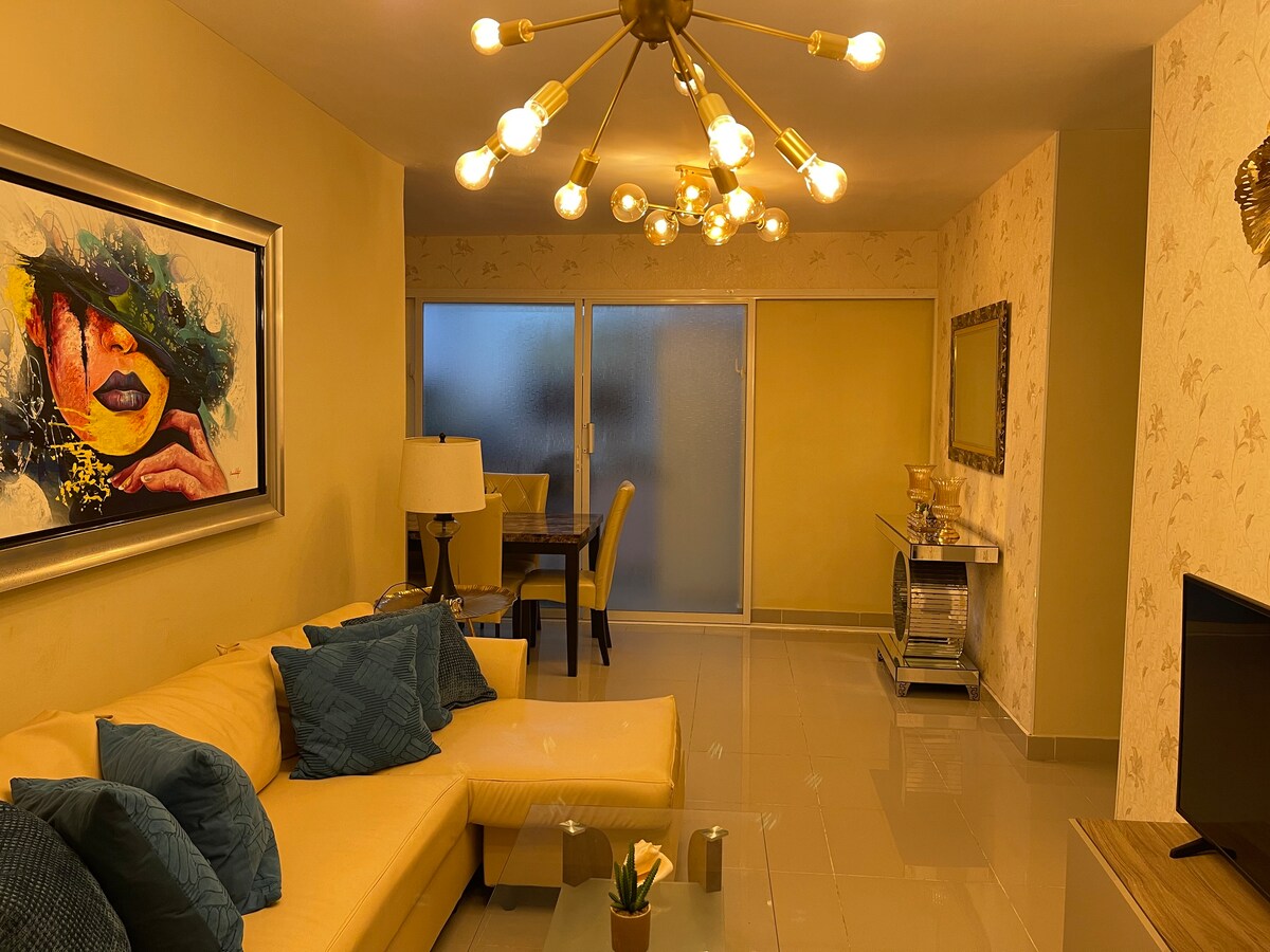 🛫 Ubicación ideal: a pocos minutos del aeropuerto, supermercados y servicios clave. Renta de vehículo disponible: entrega y recogida en el apartamento. Consulta disponibilidad. Lujoso apto de 3 habitaciones, cada una con aire y Smart TV de 43”. Sala con TV de 75” y techo estrellado LED. WiFi ultra rápido, cocina equipada, nevera, lavadora, secadora y agua caliente. Espacios modernos y cómodos. Todo es tal cual como en las fotos. Ideal para descansar, trabajar o disfrutar con estilo.