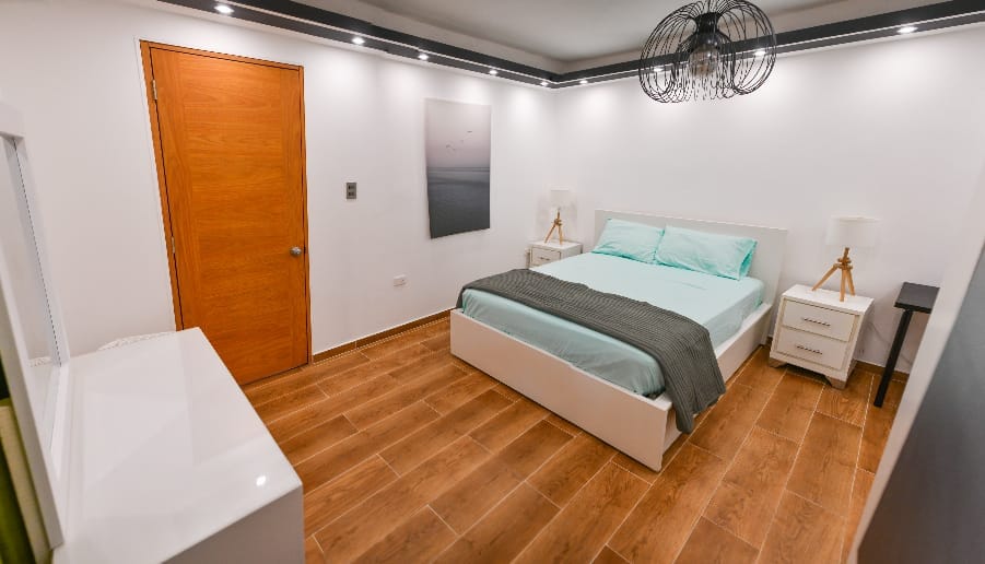 Hermoso dormitorio, un baño, totalmente amueblado, terraza privada, balcón en cada habitación, una plaza de estacionamiento, lavadora y secadora, unidad de aire acondicionado, gimnasio y guardias de seguridad. También ofrecemos wifi gratuito, IPTV y cualquier alojamiento que necesites, como café, botellas de agua y toallas. Nuestro departamento está ubicado a pocos minutos de muchas atracciones principales como Zona Colonial, Faro a Colón, El Malecón, Parque Nacional Los Tres Ojos, Parque Mirador Este, Acuario Nacional, Aqua Splash. También Starbucks McDonald's y muchos más
