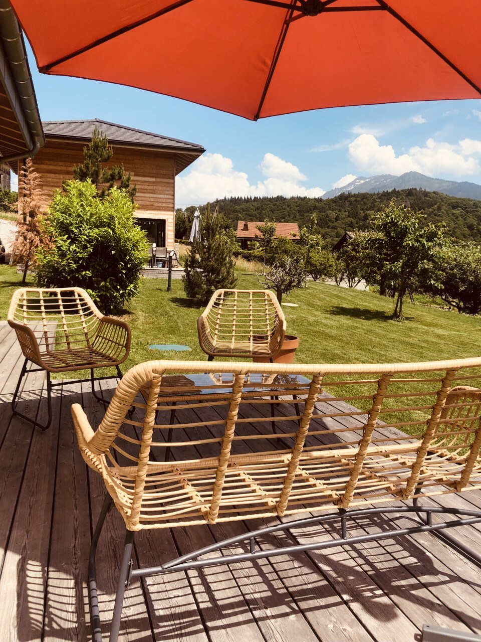 Venga a relajarse en nuestra dependencia con aires de pequeña cabaña. Con una ubicación ideal entre lagos y montañas, será ideal para todos los amantes de la naturaleza que deseen relajarse en paz. También hará las delicias de los más aventureros con las actividades disponibles en las cercanías. Ubicada a más de 700 m de altitud con vistas a las montañas, también se puede ver la punta del Mont Blanc.