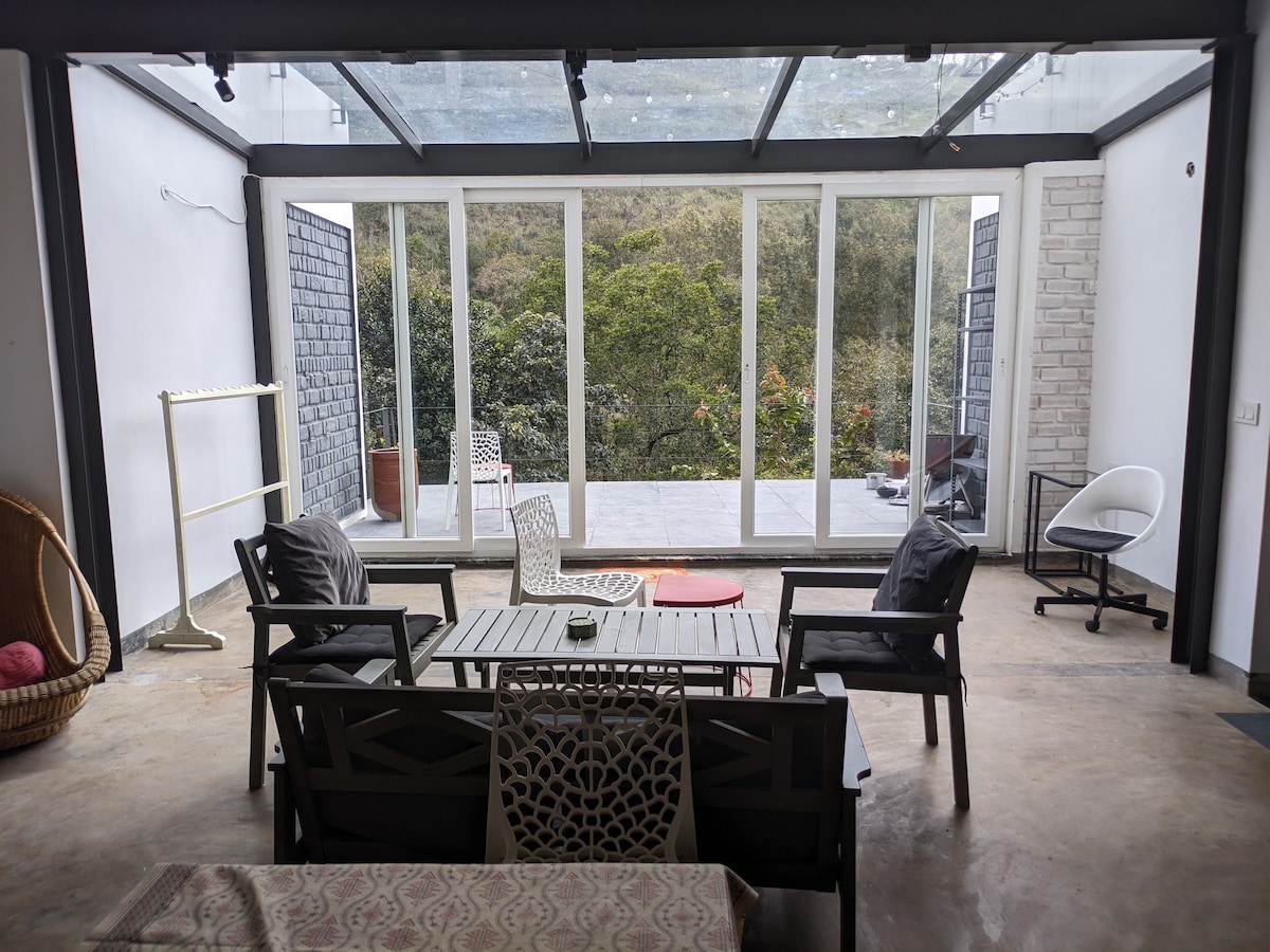 Ubicada en lo alto de una pintoresca colina en el Sahayadris, la casa de campo construida ecológica te ayuda a mantenerte arraigado en la Tierra pero aún así estar cerca del cielo. Sé testigo de la belleza de un hermoso sol que sale sobre las montañas mientras descansas en la terraza con una taza de té. Lee un libro, sentado en el ventanal y sueña. Respira hondo, exhala y recuerda: estás aquí, lejos de todo lo que te molesta. Estás presente y en sintonía con los pájaros y las abejas que vuelan.