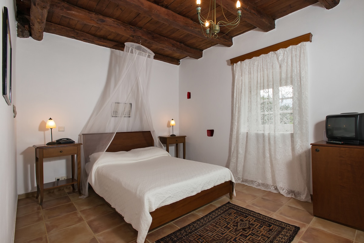 La casa de huéspedes se encuentra en el pueblo tradicional de Doliana. Tiene 2 habitaciones dobles y una suite junior en el primer piso y una suite ejecutiva de dos dormitorios con cocina, en la planta baja. Las habitaciones tienen hermosas vistas a las montañas y al pueblo. Están climatizados con ventiladores de techo para el verano y calefacción central de calidad para el invierno, equipo completo y de alta calidad, minibar, cafetera, TV inteligente, internet de alta velocidad y un escritorio. Arriba hay una sala de estar compartida.
