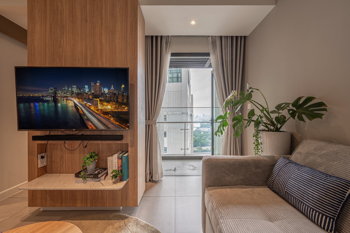 Inspirado en el tiempo de nuestro diseñador en Nueva York, este apartamento de 90 metros cuadrados tiene un hermoso diseño abierto con techos altos. Está decorado con muebles clásicos de mediados de siglo y arte cuidadosamente seleccionado. El dormitorio principal y la sala de estar se abren a un balcón con vistas panorámicas al centro de Saigón. Las comodidades incluyen lavadora, Apple TV y Netflix, y una barra de sonido bluetooth. La ubicación en Nguyen Hue lo pone a poca distancia a pie de los principales lugares de interés y de las mejores cafeterías, restaurantes, tiendas y vida nocturna de la ciudad.