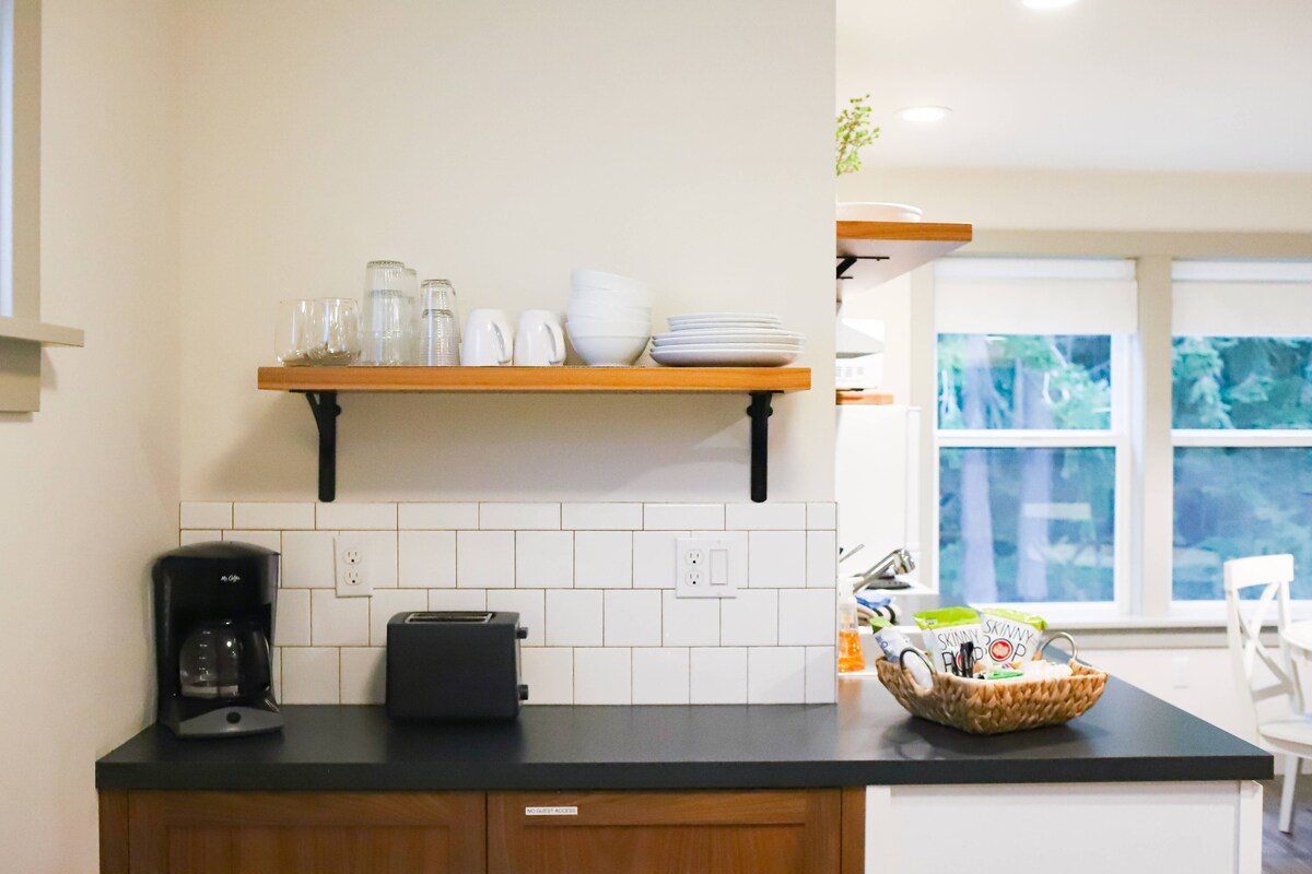 No se permiten animales/mascotas. Ubicado en la ciudad, a 4 minutos en auto del centro de Olympia, esta es una base de casas muy popular para explorar el noroeste del Pacífico, o si estás en la ciudad por motivos de trabajo. Muy cerca del Edificio Capital, las oficinas estatales, el centro de la ciudad y todas las comodidades. Remodelada en 2019, hay una cocina completa con muchas opciones de desayuno y aperitivos. El extenso baño tiene pisos climatizados, una ducha de 5 pies y una lavadora-secadora de tamaño completo Samsung.