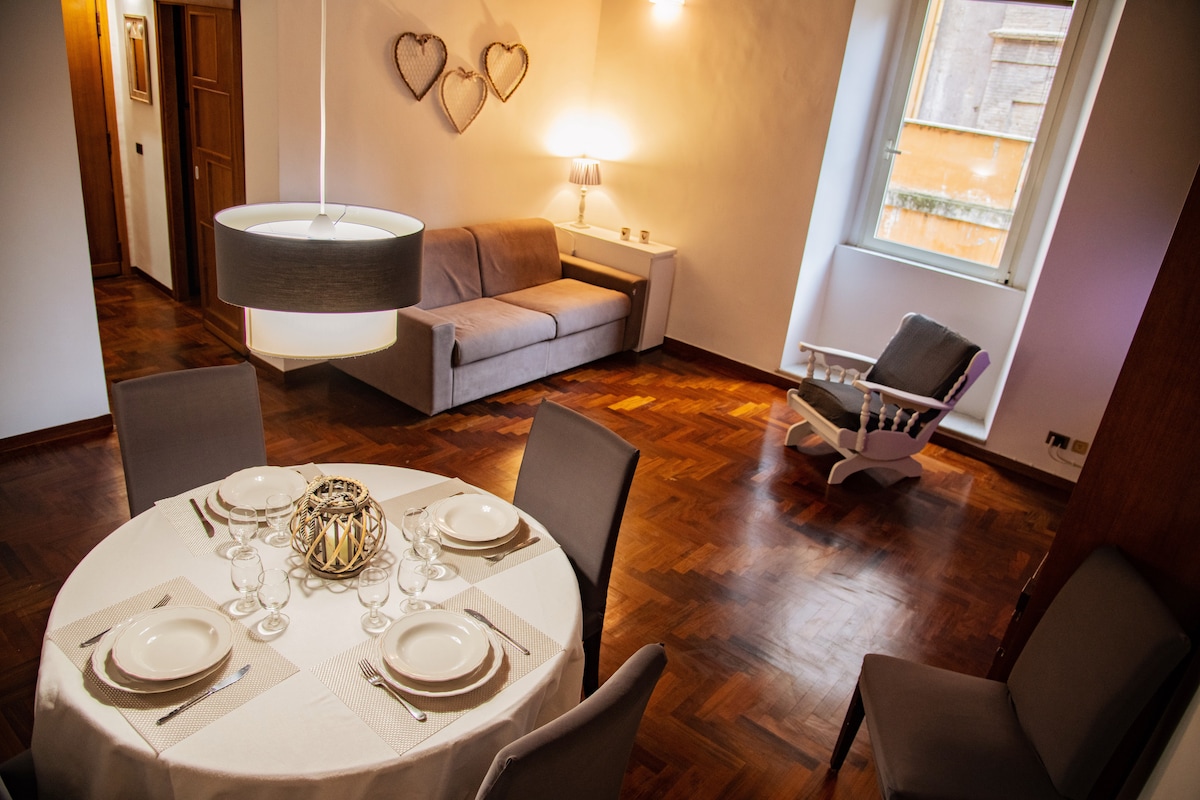 Disfruta del ambiente cálido y acogedor de este apartamento, donde la madera de las vigas del techo y el parqué crean juegos de luces de color miel. La moderna disposición de los espacios favorece la comodidad. En el característico barrio de Borgo Pio, en un edificio histórico del siglo XIX muy tranquilo, a 100 metros de la basílica de San Pedro y a 500 metros de los Museos Vaticanos. Muy cerca de la zona comercial de Via Cola di Rienzo y Via del Corso. El apartamento consta de un dormitorio doble con baño con ducha y bañera de hidromasaje, una gran sala de estar con un gran sofá y un sofá cama doble, mesa de comedor y una gran cocina equipada con cafetera Nespresso, tostadora, hervidor de agua, lavavajillas y microondas. El apartamento cuenta con 2 televisores e internet wifi, calefacción independiente y aire acondicionado centralizado en todas las habitaciones. El horario de llegada es bastante flexible; es necesario acordar con antelación el horario de llegada por correo electrónico o Whatsapp. La salida está prevista antes de las 10:00. Para recoger las llaves, le enviaré instrucciones. El edificio no dispone de ascensor. El barrio de Borgo es una zona tranquila y elegante a pocos pasos de la Basílica de San Pedro y de los Museos Vaticanos, así como de la gran calle comercial Cola di Rienzo, que conecta el centro histórico de Roma, la Piazza del Popolo, con el Vaticano. Nuestra residencia se encuentra a pocos metros de la parada de metro de Ottaviano, con la que podrás llegar fácilmente a todos los lugares de interés de la Ciudad Eterna. Cargos adicionales a pagar a la llegada: - Impuesto municipal de 3,5 € por persona y día