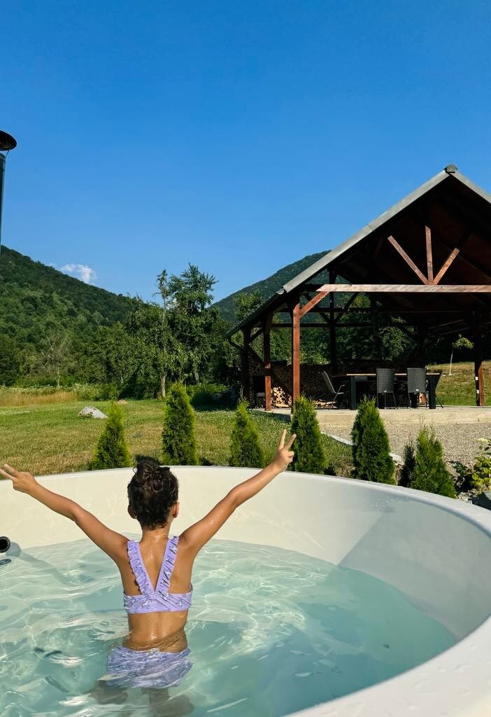 Nuestra acogedora pequeña cabaña para parejas es rica en oportunidades para disfrutar del aire libre y tomar unas vacaciones de la vida en las hermosas montañas de los Cárpatos de Rumania. 30 minutos de la estación de esquí Muntele Mic, y situado junto a un arroyo de montaña ondulante. Disfruta de una gran selección de restaurantes locales auténticos en la ciudad cerca. Y tal vez... si tienes suerte echarás un vistazo a la vida silvestre local que está deambulando por el bosque alrededor de la cabaña, y sin duda disfrutarás de las muchas aves silvestres revoloteando alrededor de la cabaña.