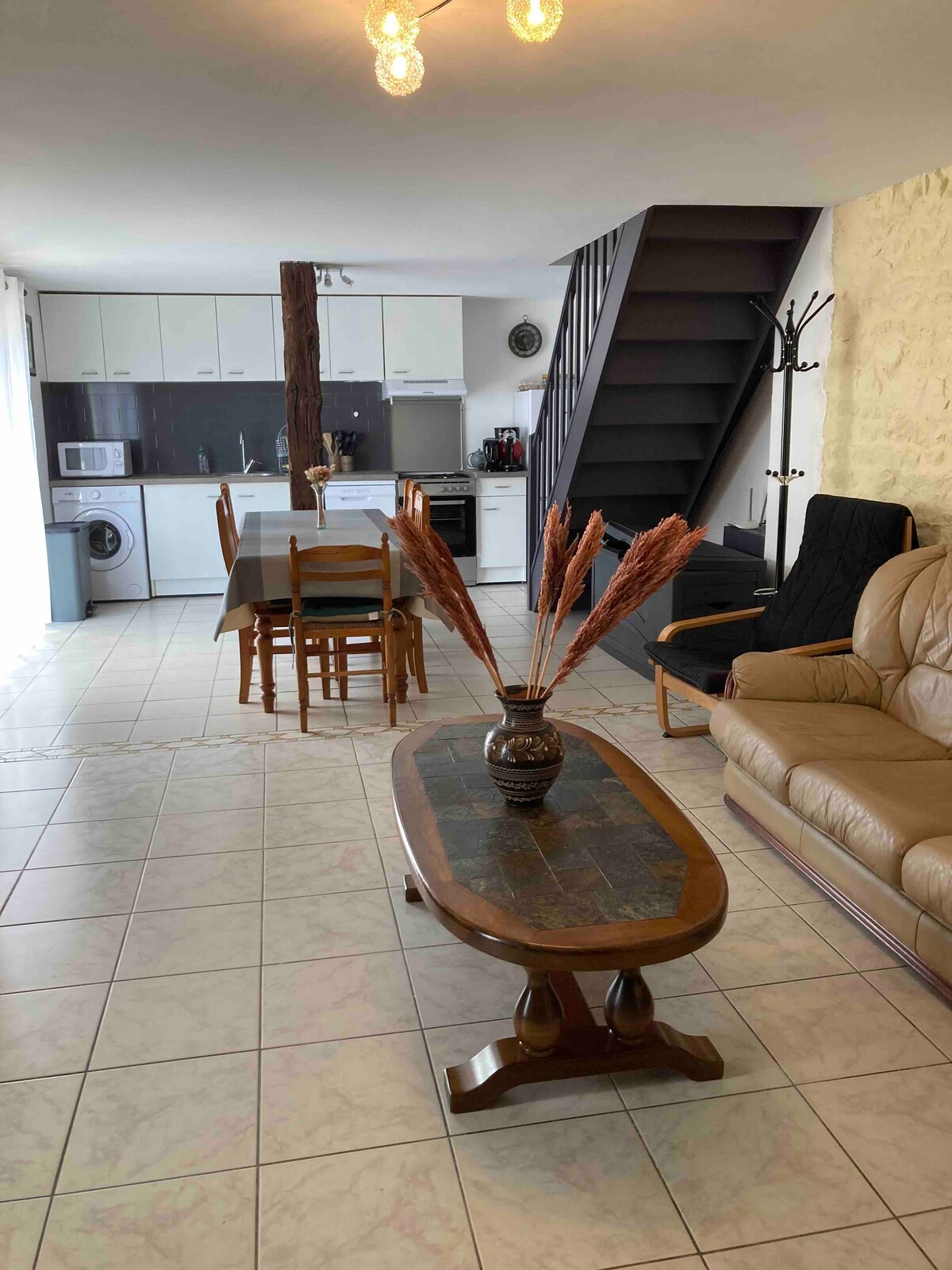 Casa antigua reformada, con 2 dormitorios y una gran sala de estar, lavavajillas, horno, microondas, hervidor, cafetera Tassimo, tostadora. Vistas al campo y a los caballos. Fibra de alta velocidad para teletrabajo. Para 1 persona o para 5 cómodamente, y un sofá cama para 2 . A menos de 5' del Parque Expo de Rennes, del aeropuerto, y a 10' de Rennes. A pocos minutos del Golf de Cicé Blossac o de St Jacques de La Lande. Entre Bruz y Goven. Acceso fácil y rápido por la 4 vías.